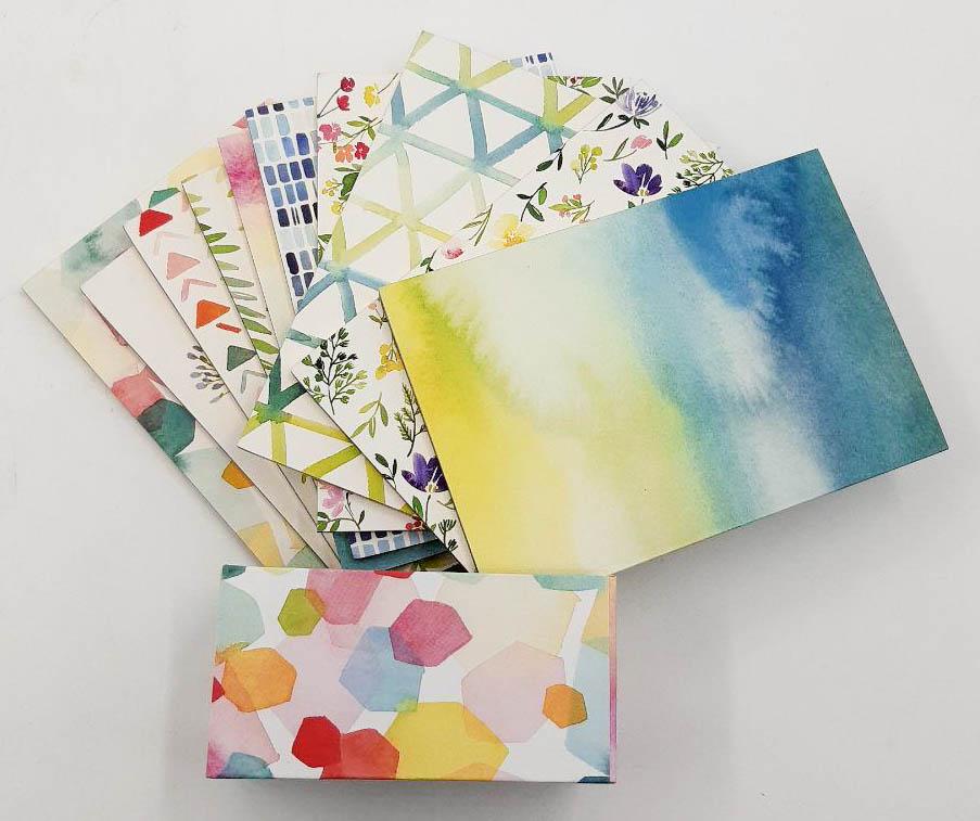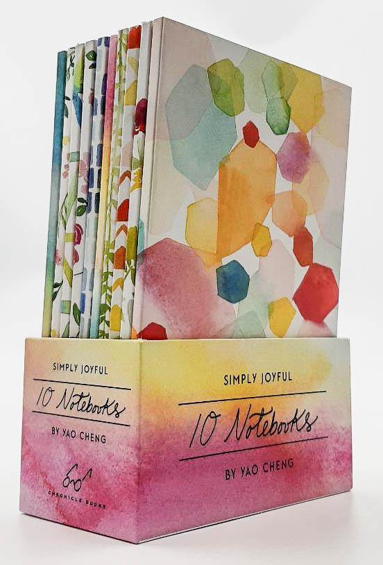 Perfect for organizing projects and everyday notes, this colorful bunch of ten petite journals comes in a convenient slipcase. Each notebook features a different vibrant watercolor by Yao Cheng and shimmering gilded page edges, making for an eye-catching statement whether displayed as a collection or slipped solo into a purse or pocket.