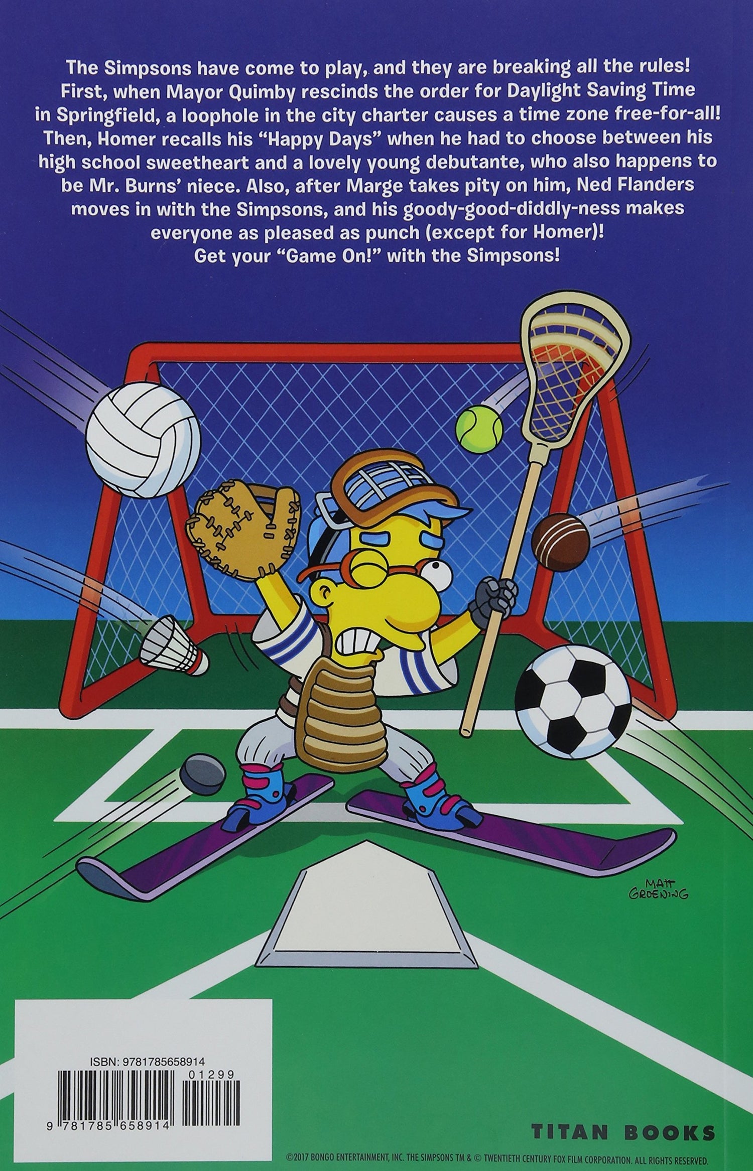 The Simpsons have come to play, and they are breaking all the rules! First, when Mayor Quimby rescinds the order for Daylight Saving Time in Springfield, a loophole in the city charter causes a time zone free-for-all! Then Homer recalls his Happy Days when he had to choose between his high school sweetheart and a lovely young debutante, who also happens to be Mr. Burns niece. Get your Game On! with the Simpsons!