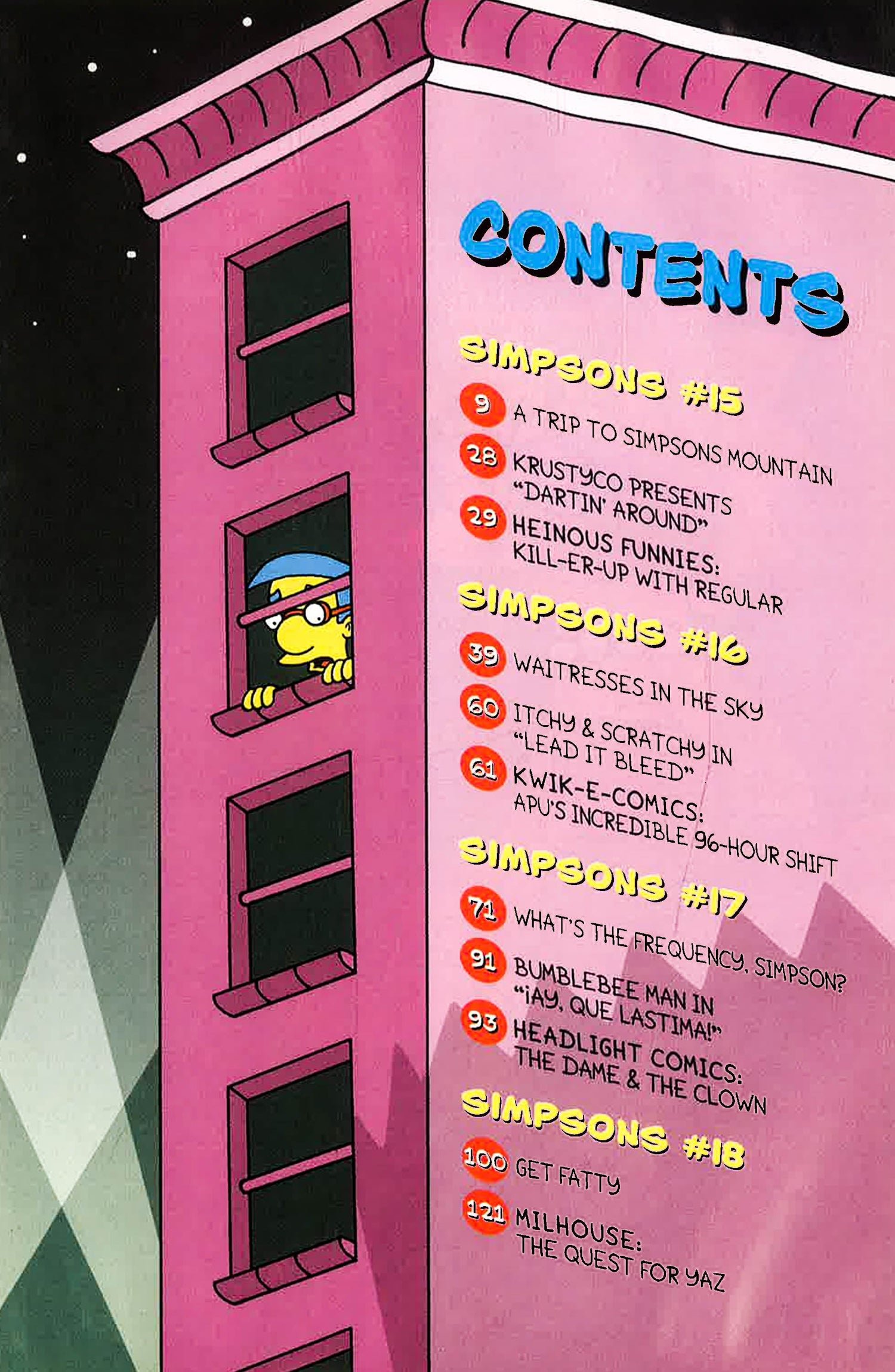 All new (in)action from the family that brought you conspicuous consumerism, The Simpsons. The very fabric of suburban life appears to be unravelling in this collection when the TV breaks down, Aunt Patty and Aunt Selma come to stay, and the President gets tough with Homer's waistline.