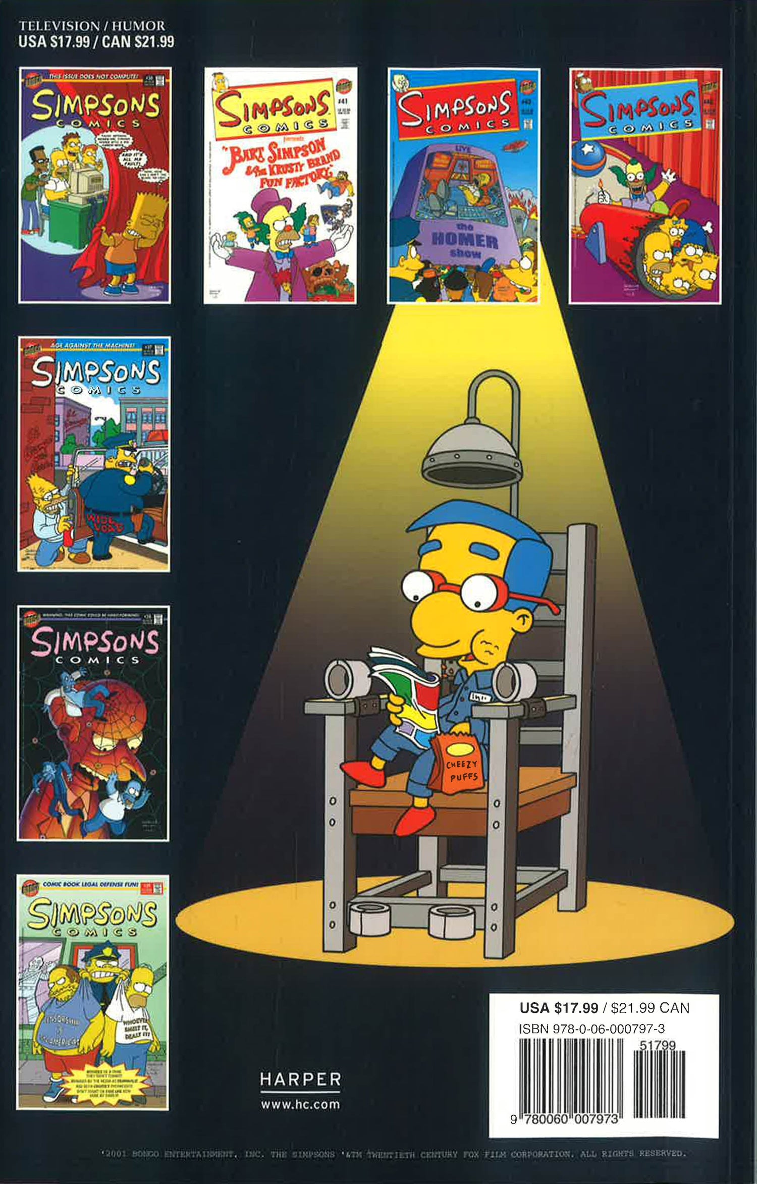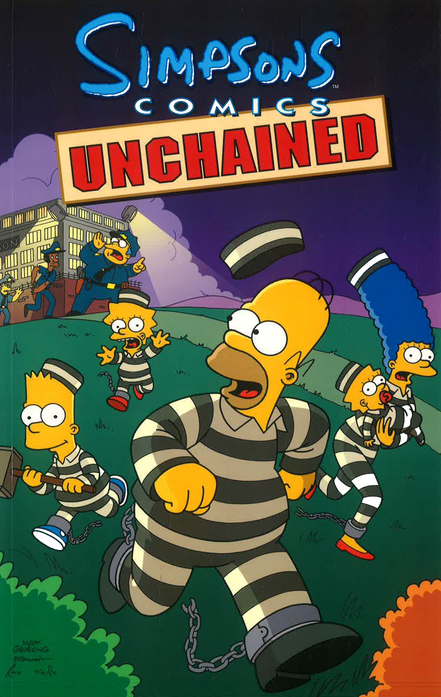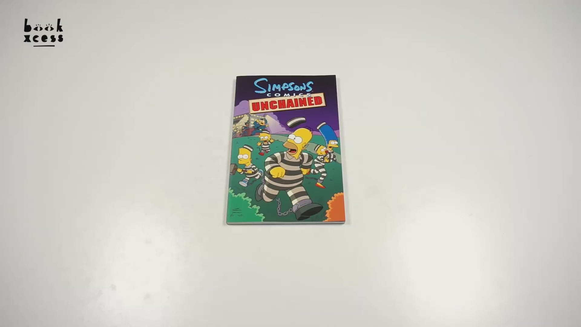 Attention, citizens! Lock your doors and windows! Run for your lives! The Simpsons are busting out the bindings of their biggest and best book yet, and no one is safe from their maniacal comic madness! See Grampa Simpson embark on a new career as El Grampo, a modern day Zorro for the senior set, whose anarchistic shenanigans start to cramp the similarly–inspired protests of his grandson, Bart Simpson (a.k.a. El Barto). Behold the destructive power of censorship as Homer Simpson and the Comic Book Guy fight for their right to free speech and their very lives. Envison a local celebrity, Krusty the Clown, who comes to dinner and refuses to leave. Witness Mr. Burns' power mad scheme to undermine the economy of Springfield by paying his employees in jelly donuts. Observe a town caught in the thrall of an international media sensation, unable to separate themselves from the television chronicle of the life of one man䇯mer Simpson. These stories and many more can barely be contained in the new comic collection...Simpsons Comics Unchained!