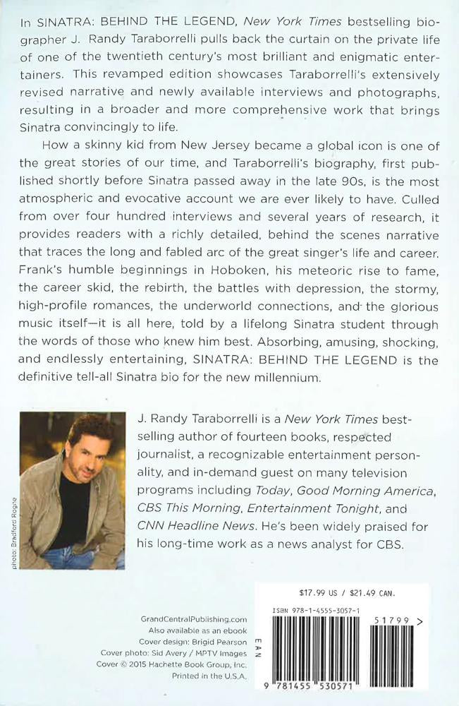 In 1997, Taraborrelli's bestselling Sinatra: Behind the Legend captivated audiences with a never-before seen look at the life of an icon through six years of research and over 425 interviews with associates, friends and lovers. Now, Taraborrelli is back with a completely new and updated lens. Fans of Sinatra--old and new--will be able to delve into the private life and controversy of a musician whose career spans decades. From show business, struggles with depression, his many romances and attaining the American dream, Sinatra's story delivers a captivating and humanizing portrait of the legend for a new age. Taraborrelli is known for capturing and penning the untold stories of icons such as the Hiltons, Michael Jackson, Marilyn Monroe, Diana Ross and the Kennedys. He has written a page-turning biography of an extremely talented, sometimes troubled, always fascinating man: the one and only Frank Sinatra.