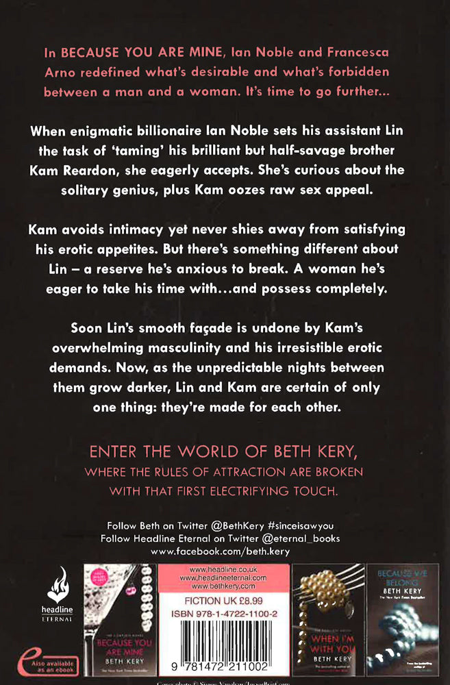 Book Four in the bestselling Because You Are Mine series, irresistible for fans of Fifty Shades of Grey, Sylvia Day's Crossfire series and J. Kenner. If you adore Sylvia Day, Fifty Shades and J. Kenner you'll love Since I Saw You...Book Four in the New York Times bestselling Because You Are Mine series.When enigmatic billionaire Ian Noble sets his assistant Lin the task of 'taming' his brilliant but half-savage brother Kam Reardon, she eagerly accepts. She's curious about the solitary genius, plus Kam oozes raw sex appeal. Kam avoids intimacy yet never shies away from satisfying his erotic appetites. But there's something different about Lin - a reserve he's anxious to break. A woman he's eager to take his time with...and possess completely. Soon Lin's smooth facade is undone by Kam's overwhelming masculinity and his irresistible erotic demands. Now, as the unpredictable nights between them grow darker, Lin and Kam are certain of only one thing: they're made for each other.For more electrifying, passionate romance, don't miss the other titles in the Because You Are Mine series: Because You Are Mine, When I'm With You and Because We Belong and look for Beth's sizzling new serialisation The Affair.