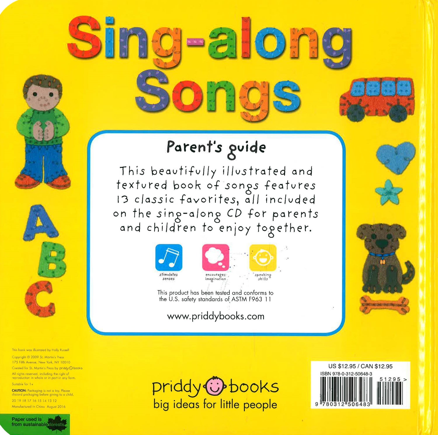 Roger Priddy's Sing-along Songs with CD is a colorfully illustrated, embossed board book featuring the lyrics of many popular children's tunes.