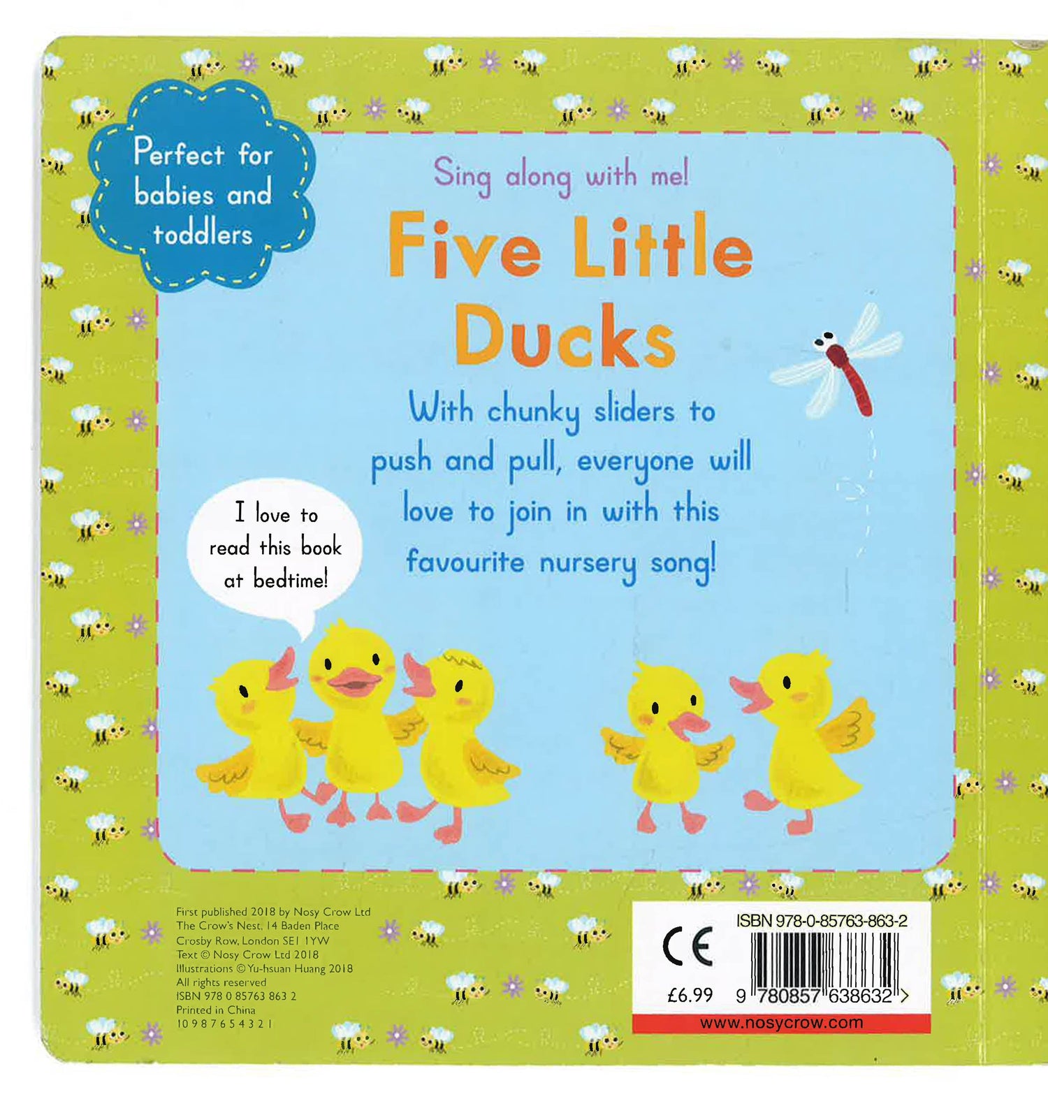 An adorable Sing-Along board book story, with five robust board sliders - easy for little hands to use! Each board book comes with a free instrumental and vocal version of the nursery rhyme - simply scan the QR code for little ones to listen and sing along!