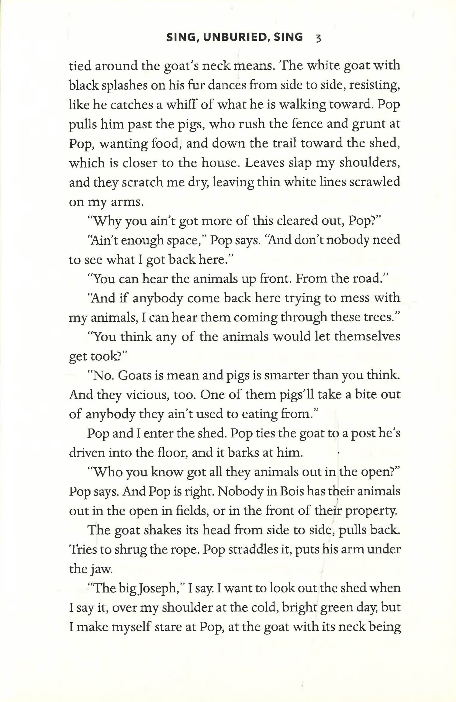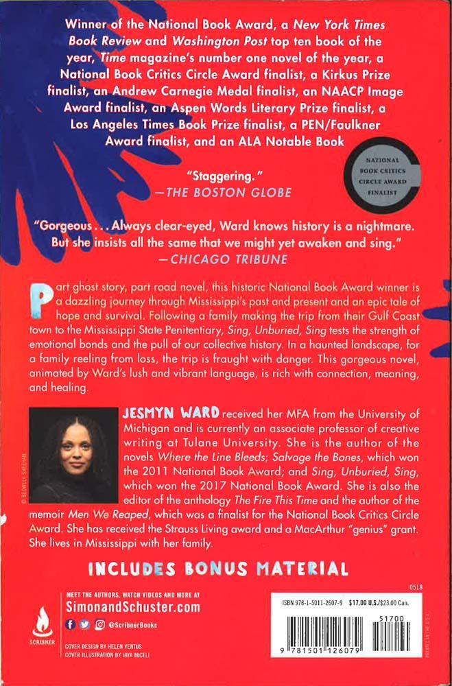 Jojo is thirteen years old and trying to understand what it means to be a man. He doesn’t lack in fathers to study, chief among them his Black grandfather, Pop. But there are other men who complicate his understanding: his absent White father, Michael, who is being released from prison; his absent White grandfather, Big Joseph, who won’t acknowledge his existence; and the memories of his dead uncle, Given, who died as a teenager.His mother, Leonie, is an inconsistent presence in his and his toddler sister’s lives. She is an imperfect mother in constant conflict with herself and those around her. She is Black and her children’s father is White. She wants to be a better mother but can’t put her children above her own needs, especially her drug use. Simultaneously tormented and comforted by visions of her dead brother, which only come to her when she’s high, Leonie is embattled in ways that reflect the brutal reality of her circumstances.When the children’s father is released from prison, Leonie packs her kids and a friend into her car and drives north to the heart of Mississippi and Parchman Farm, the State Penitentiary. At Parchman, there is another thirteen-year-old boy, the ghost of a dead inmate who carries all of the ugly history of the South with him in his wandering. He too has something to teach Jojo about fathers and sons, about legacies, about violence, about love.