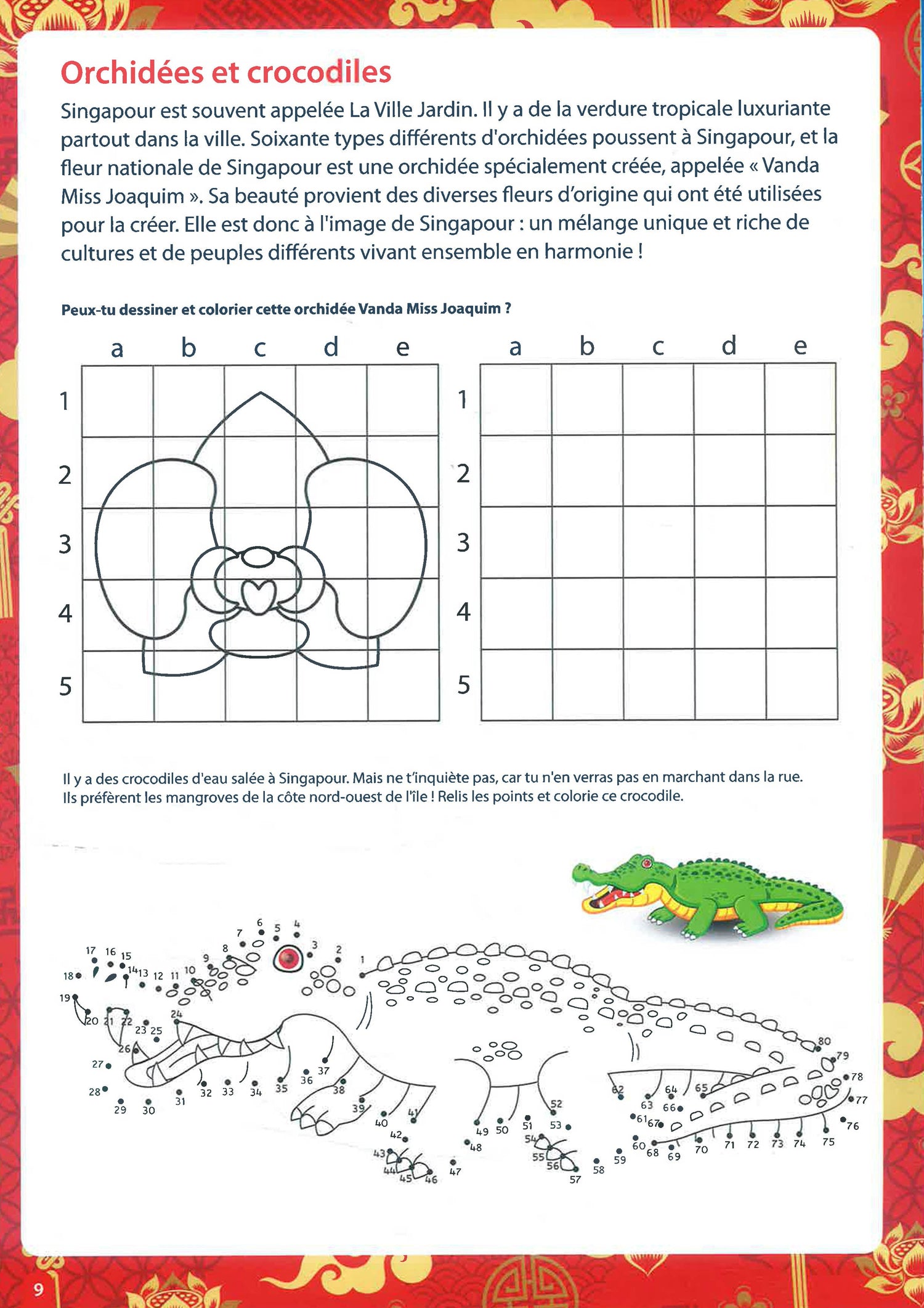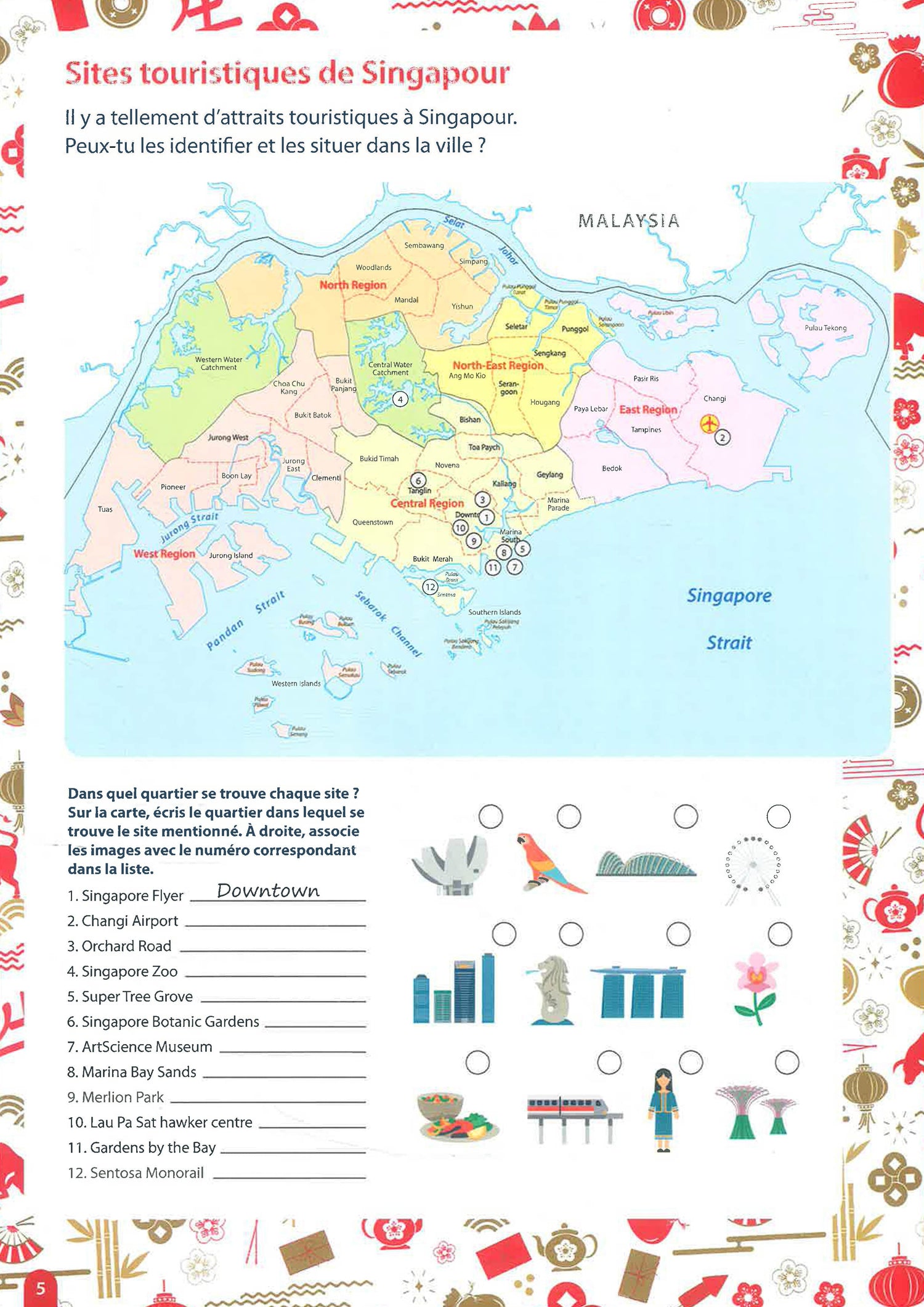 Pour préparer un prochain voyage en famille, revivre un voyage passé, ou pour transformer un jeune en citoyen du monde! Chaque livre de la collection Mon Carnet de Globetrotteur propose des jeux et des puzzles pour explorer la culture et les coutumes, les principaux attraits touristiques, la langue, la cuisine locale, et bien plus encore. Ils sont destinés aux enfants de 6 à 12 ans, pour ouvrir leurs horizons tout en s'amusant.Globetrotteur à Singapour: Où est située Singapour ? Découvrez les principaux quartiers de cette ville étincelante d’Asie, et dessinez-y un graffiti et l’un de ses temples. Faites la fête du Nouvel An chinois, du Deepavali hindou et du Hari Raya musulman. Vroum, vroum, faites une course de F1 à travers les rues de la ville.Découvrez la culture et les coutumes de la Ville-Lion tout en jouant, en explorant l'histoire de la ville, ses attraits principaux, sa diversité culturelle, son port maritime névralgique, les innovations d’urbanisme, et bien plus. Et quand vous aurez fini d’explorer, obtenez votre certificat Mon Carnet de Globetrotteur personnalisé !Le monde... dans la paume de petites mains!