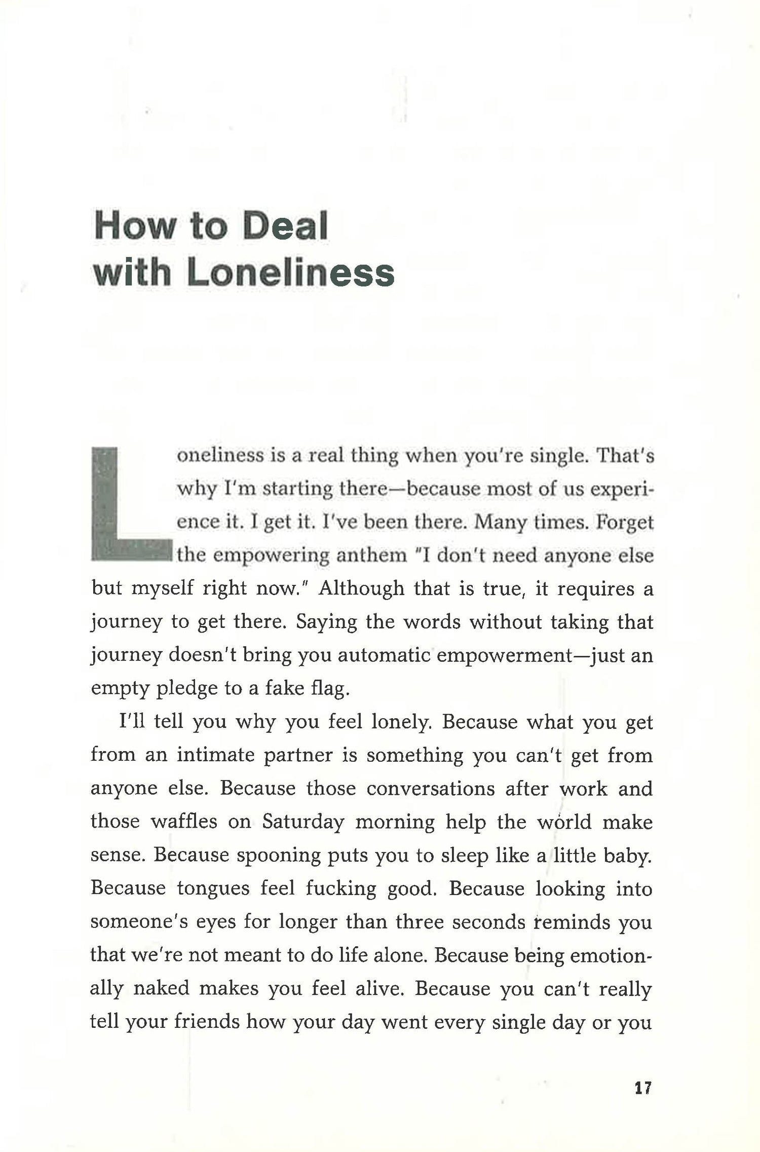 There's more to life than loving someone. But being single can feel like a death sentence. Why does being alone = being lonely? And why do we stop working on ourselves when we're in a relationship?
