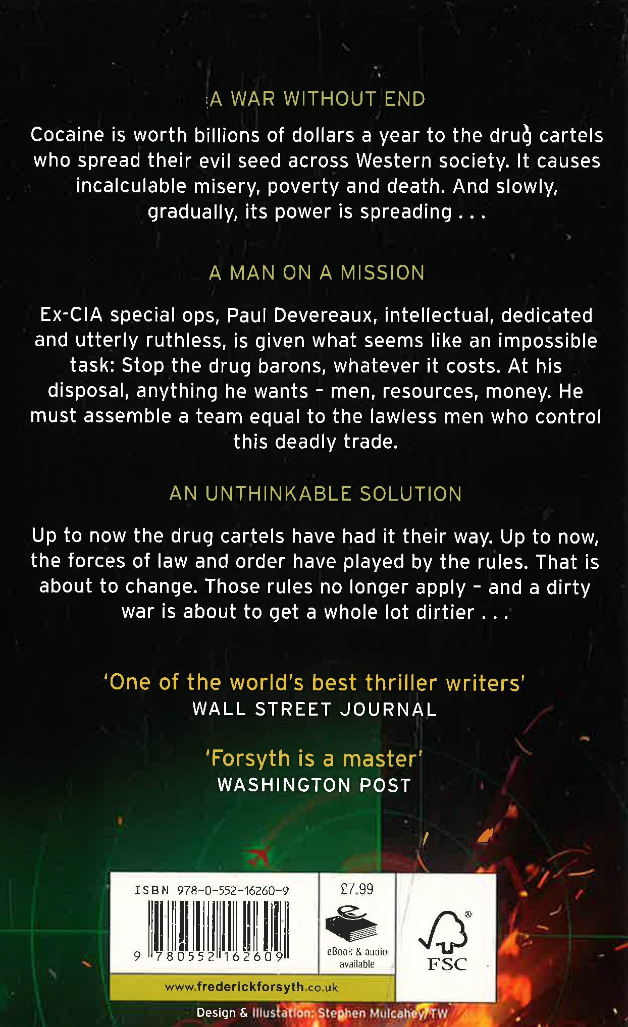 A WAR WITHOUT ENDCocaine is worth billions of dollars a year to the drug cartels who spread their evil seed across Western society. It causes incalculable misery, poverty and death. And slowly, gradually, its power is spreading...A MAN ON A MISSIONEx-CIA special ops, Paul Devereux, intellectual, dedicated and utterly ruthless, is given what seems like an impossible task: Stop the drug barons, whatever it costs. At his disposal, anything he wants - men, resources, money. He must assemble a team equal to the lawless men who control this deadly trade.AN UNTHINKABLE SOLUTIONUp to now the drug cartels have had it their way. Up to now, the forces of law and order have played by the rules. That is about to change. Those rules no longer apply - and a dirty war is about to get a whole lot dirtier...