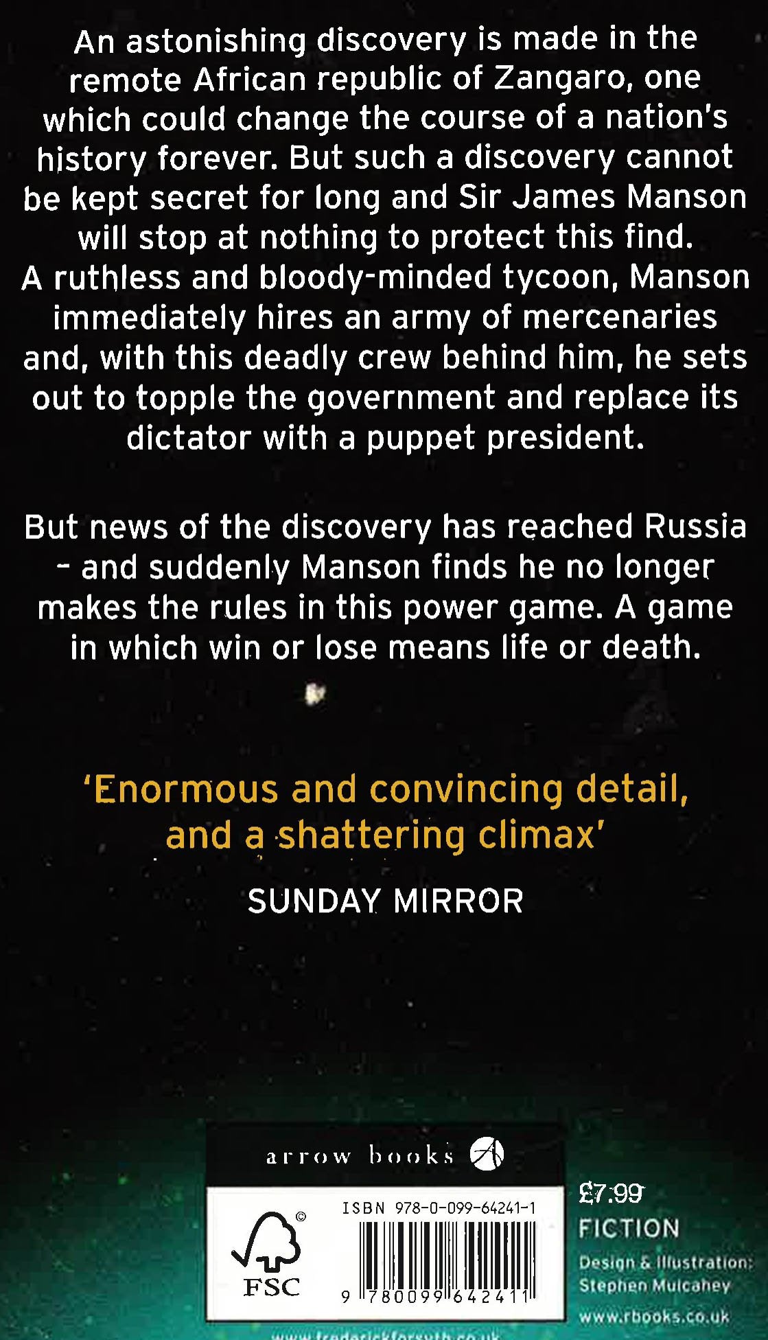 An astonishing discovery is made in the remote African republic of Zangaro, one which could change the course of a nation's history forever. But such a discovery cannot be kept secret for long and Sir James Manson will stop at nothing to protect this find. A ruthless and bloody-minded tycoon, Manson immediately hires an army of mercenaries and with this deadly crew behind him he sets out to topple the government and replace its dictator with a puppet president. But news of the discovery has reached Russia - and suddenly Manson finds he no longer makes the rules in this power game. A game in which win or lose means life or death. In this masterful thriller of international intrigue, Frederick Forsyth delivers a tense, brutal and always believable tale that will satisfy die-hard fans and newcomers alike.