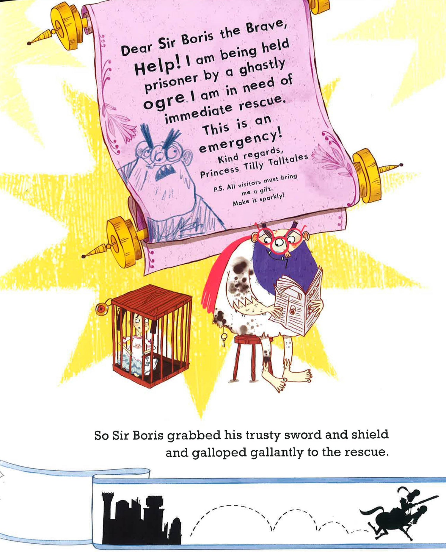 Sir Boris is busy removing a particularly pongy piece of goblin poo from his shoes when an urgent message arrives from Princess Tilly Talltales. It's an emergency! She's been captured by an ogre, told-off by a witch and there's a dragon on the loose. But something is not quite right . . . is the princess actually telling the truth?