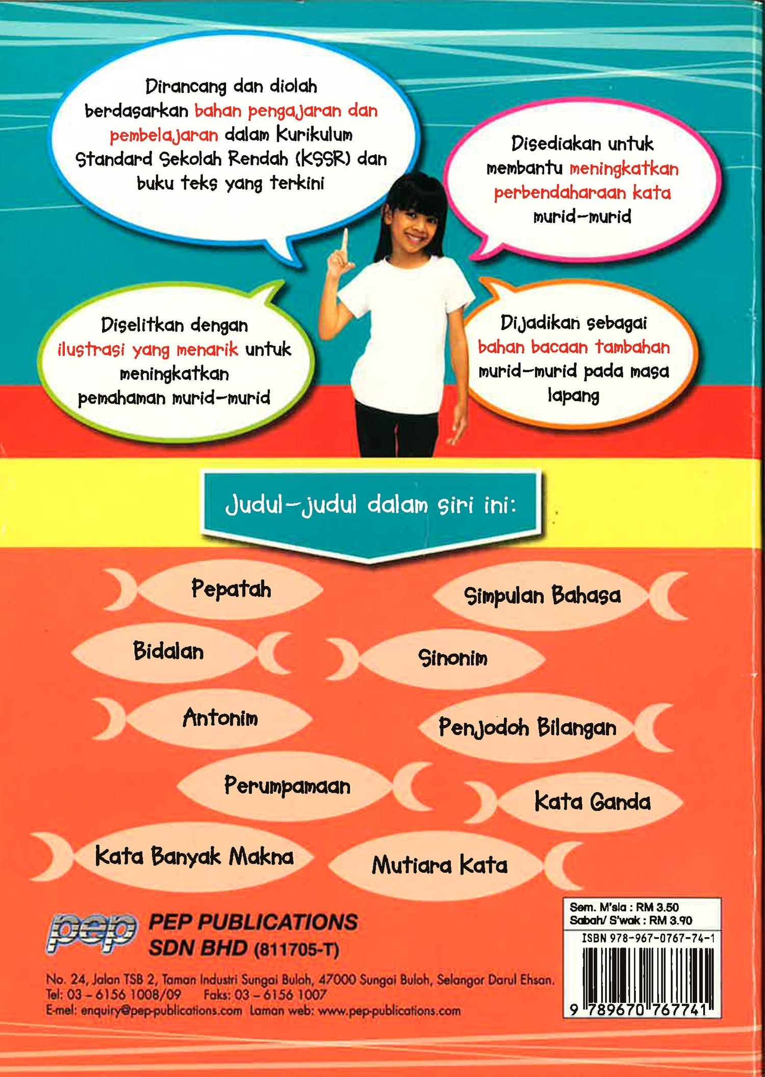 Dirancang dan diolah berdasarkan bahan pengajaran dan pembelajaran dalam Kurikulum Standard Sekolah Rendah (KSSR) dan buku teks yang terkini. Disediakan untuk membantu meningkatkan perbendaharaan kata murid-murid. Dijadikan sebagai bahan bacaan tambahan murid-murid pada masa lapang. Diselitkan dengan ilustrasi yang menarik untuk meningkatkan pemahaman murid-murid.