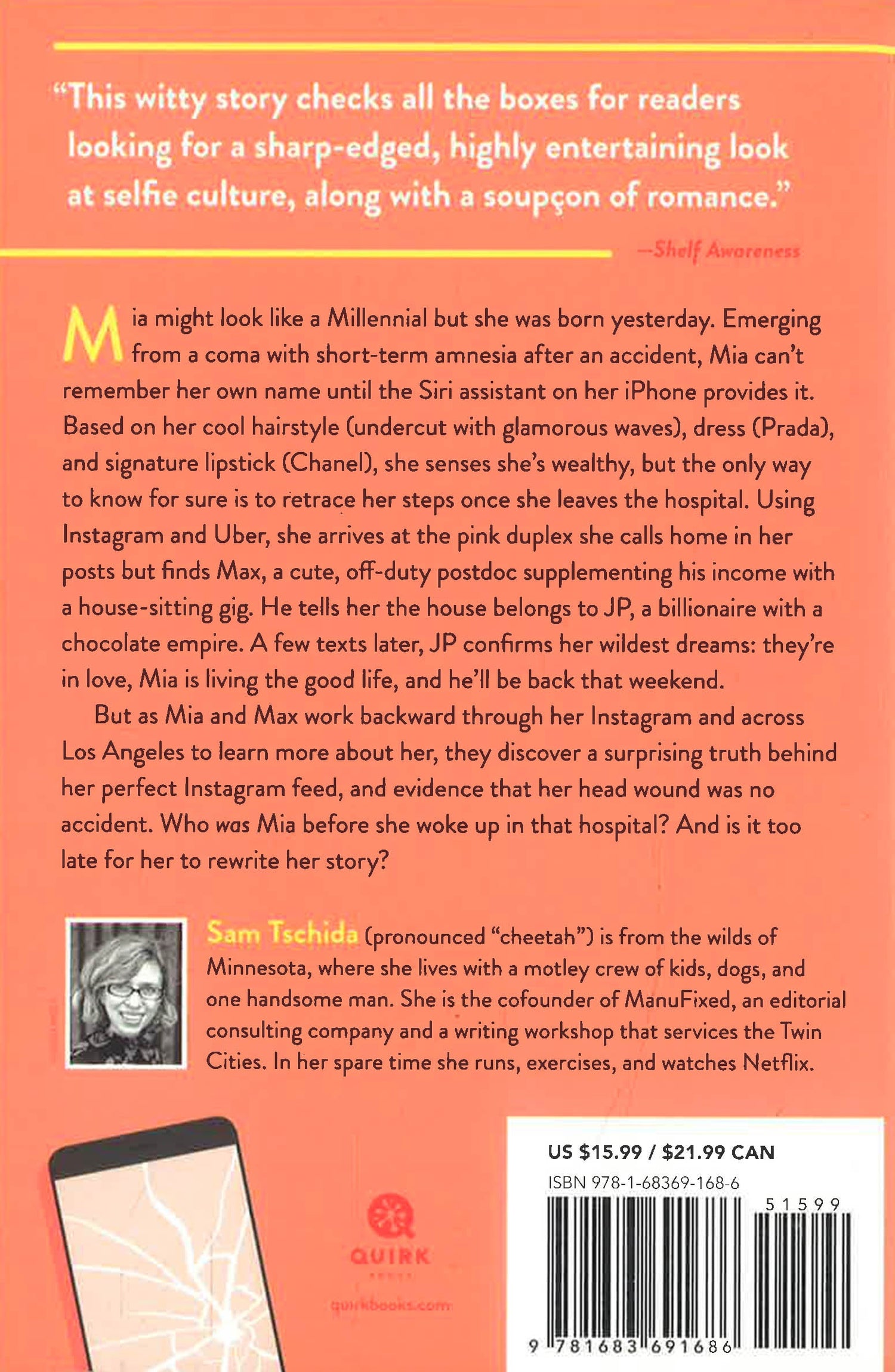 When Mia wakes up in a Long Beach hospital with a head wound, she knows everything there is to know about the Kardashian-Jenner family but almost nothing about herself. The only items in her possession are her torn party dress which immediately begs the question, what kind of girl parties on a Tuesday night? a tube of Chanel lipstick, and an iPhone with a shattered screen. She might not remember where she lives but she can use her Instagram account to work backward to piece together the basic facts of her identity. Easy enough, right? Instagram tells her that she lives in a Millennial-pink duplex that would make Kylie Jenner jealous. But when she arrives, she discovers a cute housesitter named Max who tells her the house actually belongs to JP, a French billionaire and he has no idea how she s connected to him. After some sleuthing, she discovers she s the owner of a high-end matchmaking service. Could JP be one of her investors? As Mia works backward through her Instagram to figure out who she really is and find anyone who knows anything about her she discovers an ugly truth buried within her perfect social media image. Is it too late to undo her lies online and become an IRL good person?