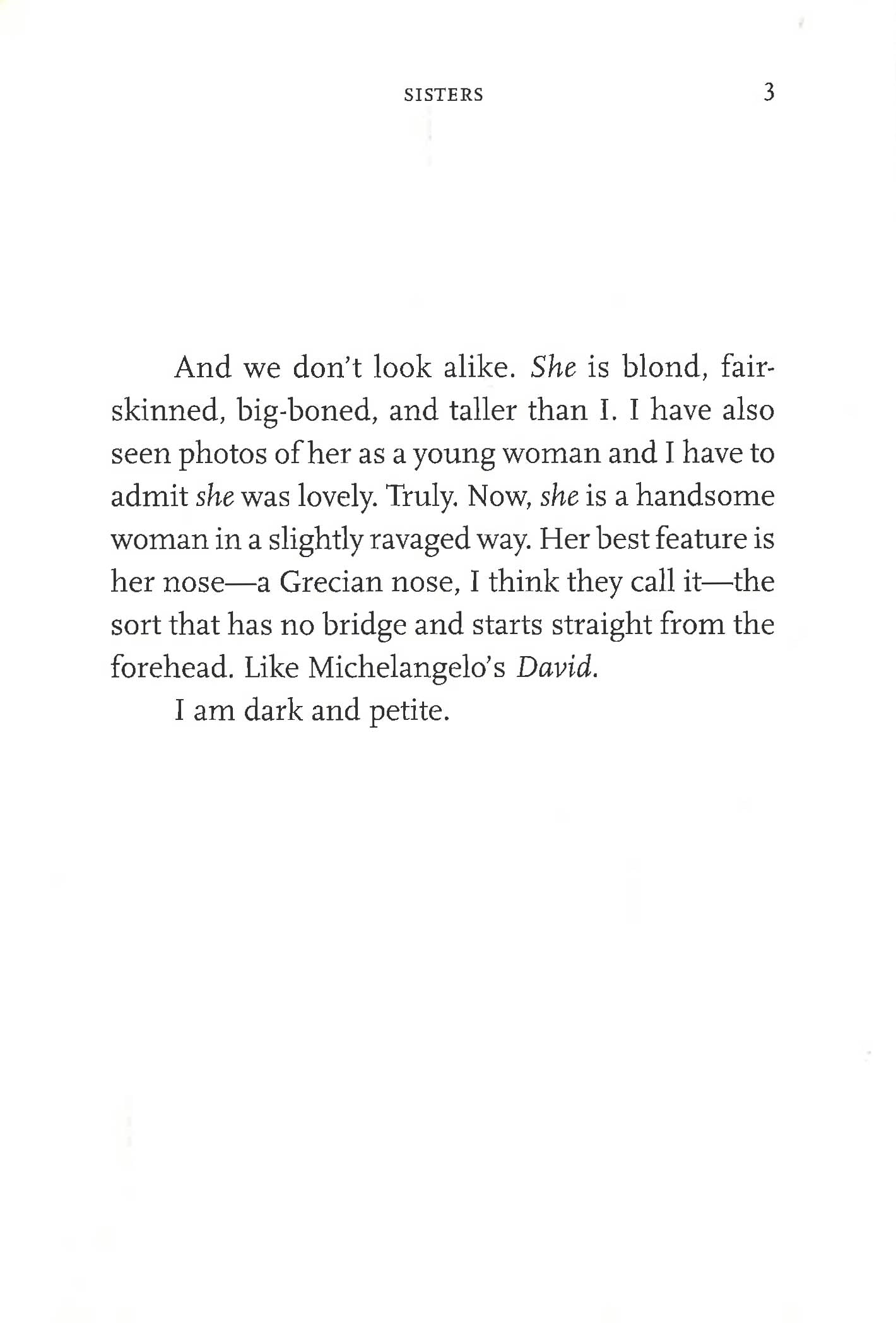 With Sisters, Lily Tuck delivers riveting psychological portrait of marriage, infidelity, and obsession; charting with elegance and insight love in all its phases.