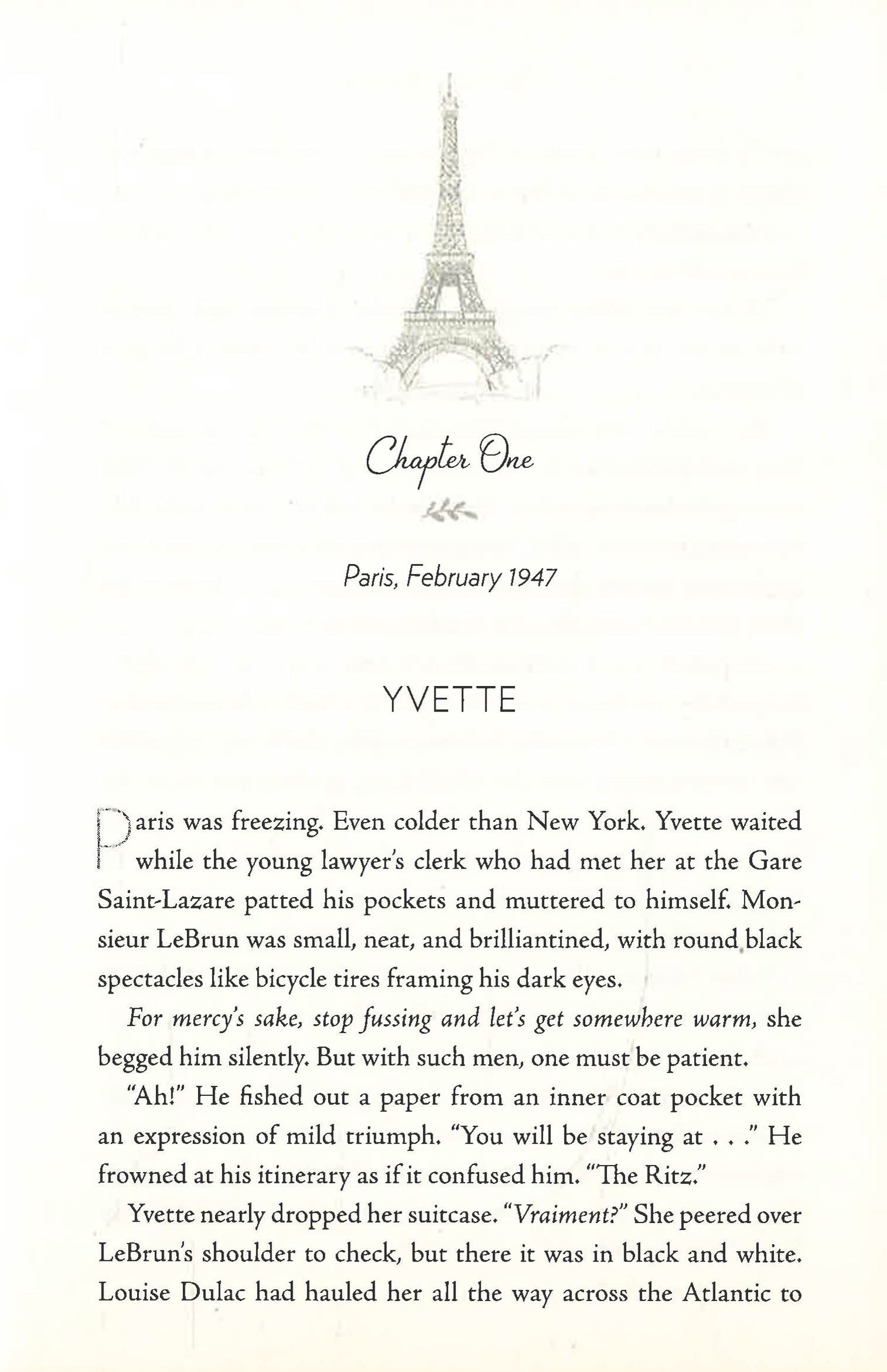 Paris, 1947: Yvette returns from New York to reunite with Gabby and begin life anew as a mannequin for Dior, who is revolutionizing fashion with the New Look. But first she must discover the truth behind Catherine’s terrible fate, while Gabby finds that there are many kinds of courage, and that love is always worth fighting for.