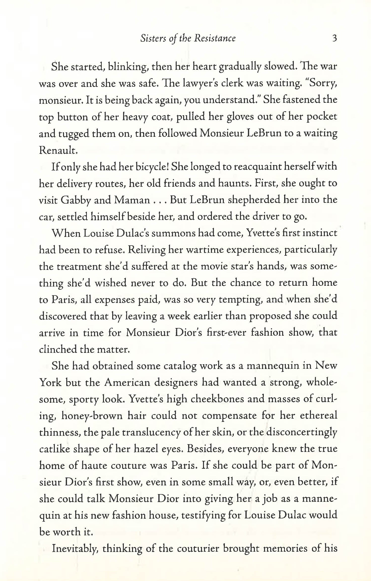 "As dazzling as a Dior gown! With a gorgeous blend of fashion, heartbreak, heroism, and love this book will transport you to France...” —Natasha Lester, New York Times bestselling author of The Paris Secret