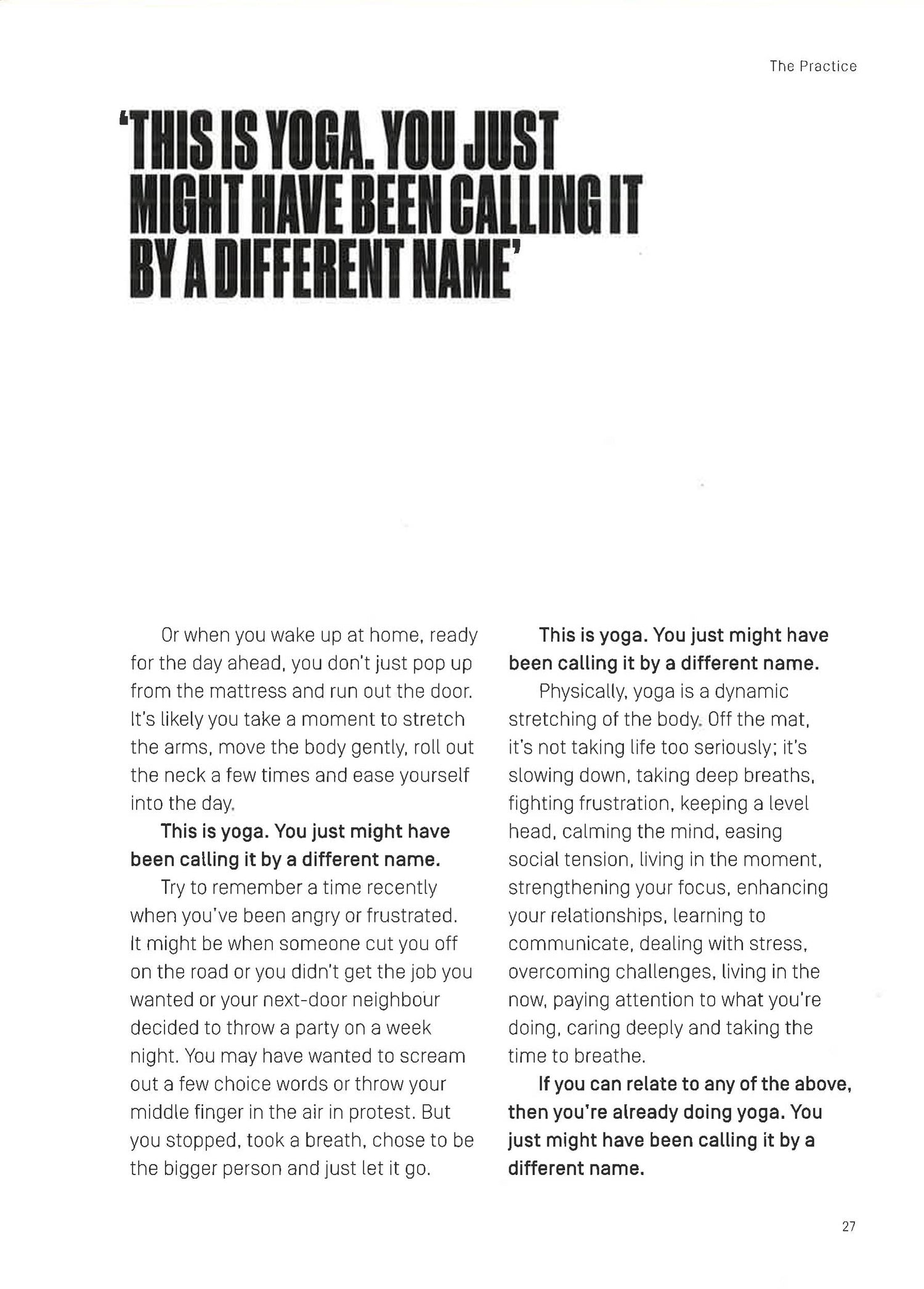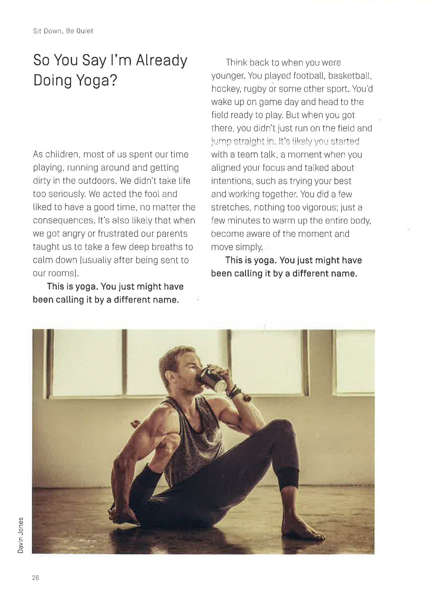 Sit Down, Be Quiet is a rallying call for men to step in and start taking control of their health and mental well-being. Through practising yoga - working inside as well as out - and adopting a mindful approach to the everyday, you can take the first steps to a healthier, happier life in the here and now.Includes:? Basic yoga poses to get started? Meditation techniques and breathing practices? How to lead a calmer, more compassionate life by practising modern mindfulness