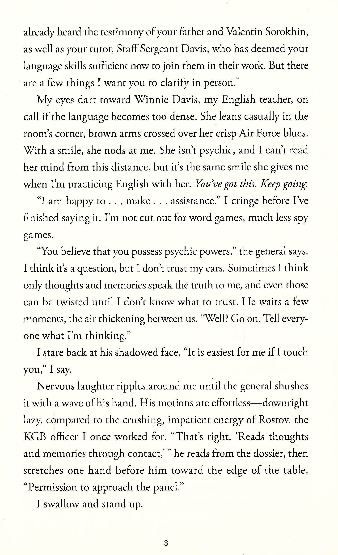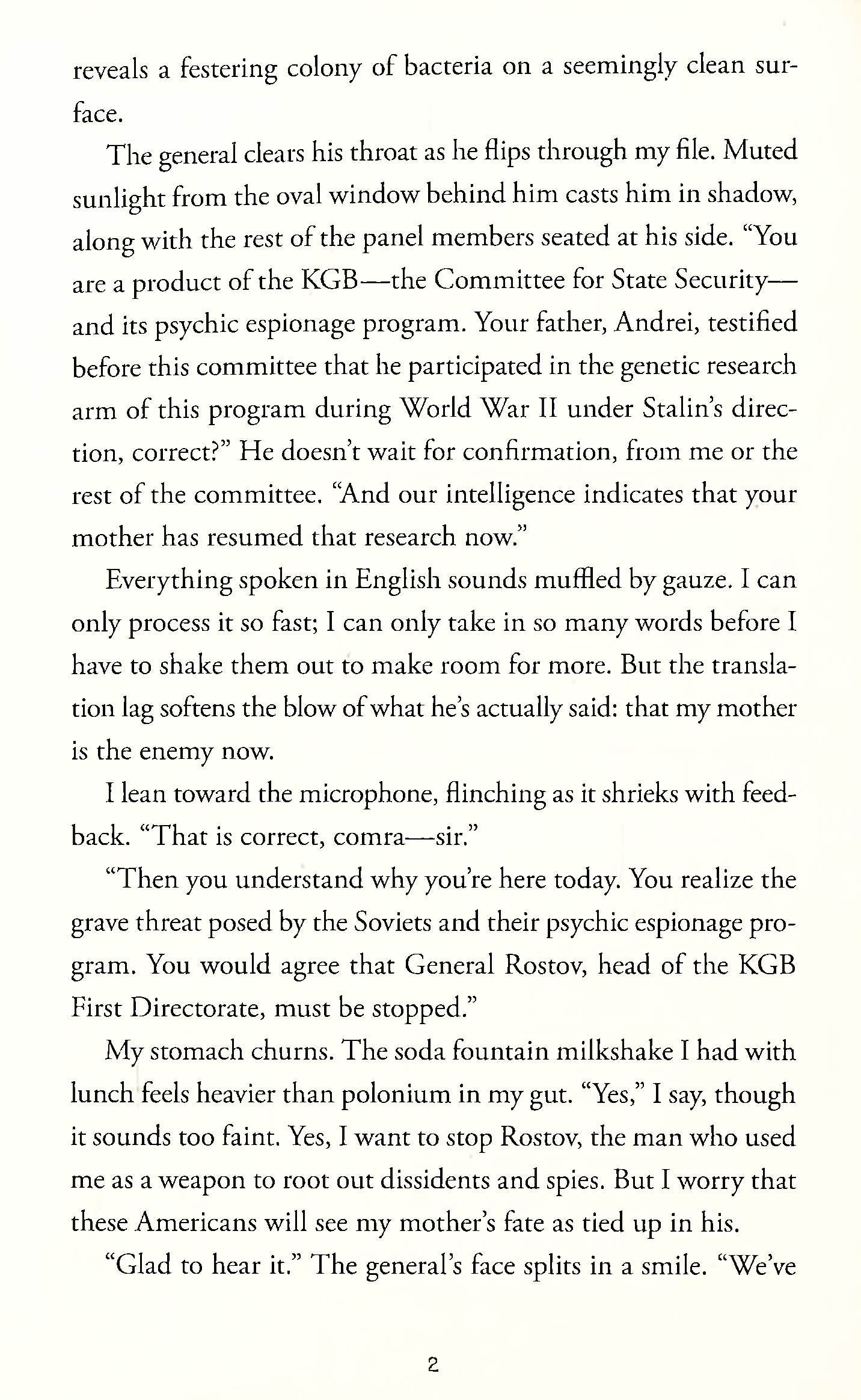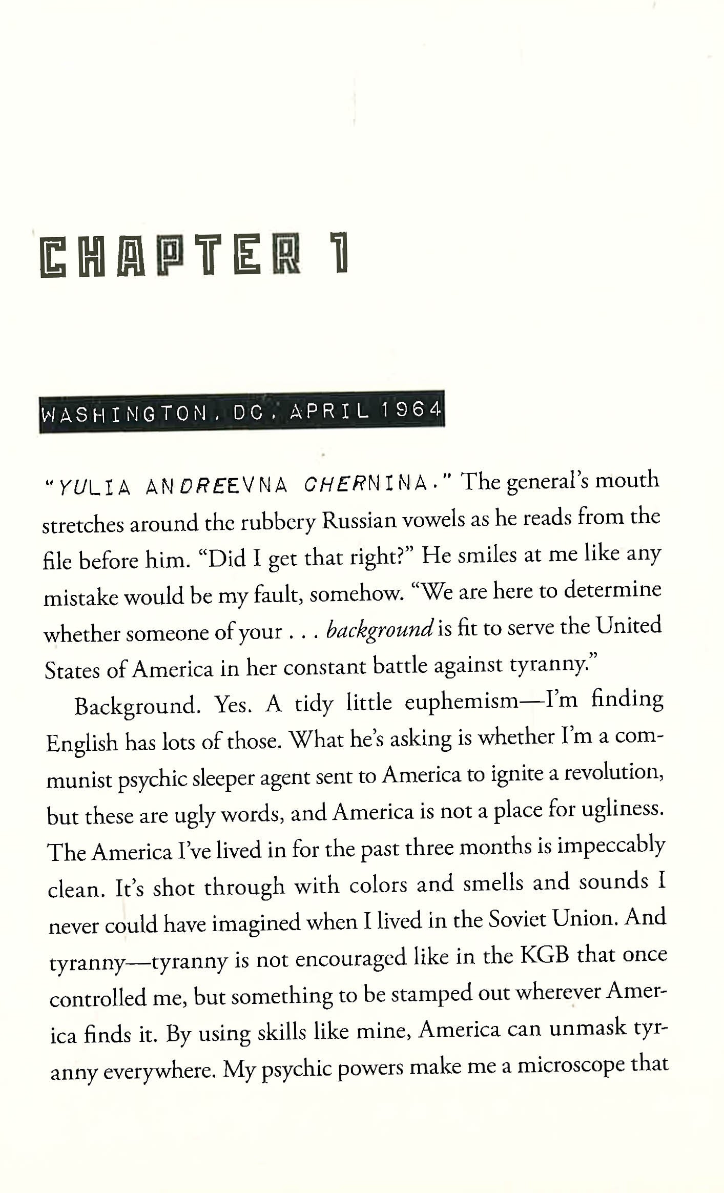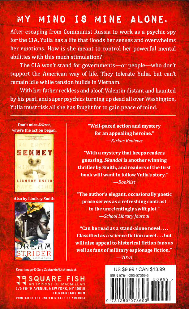 My mind is mine alone. Life in Washington, D.C., is not the safe haven Yulia hoped for when she risked everything to flee Communist Russia. Her father is reckless and aloof, and Valentin is distant and haunted by his past. Her mother is being targeted by the CIA and the US government is suspicious of Yulia's allegiance. And when super-psychics start turning up in the US capitol, it seems that even Rostov is still a threat. Ultimately, Yulia must keep control of her own mind to save the people she loves and avoid an international Skandal.
