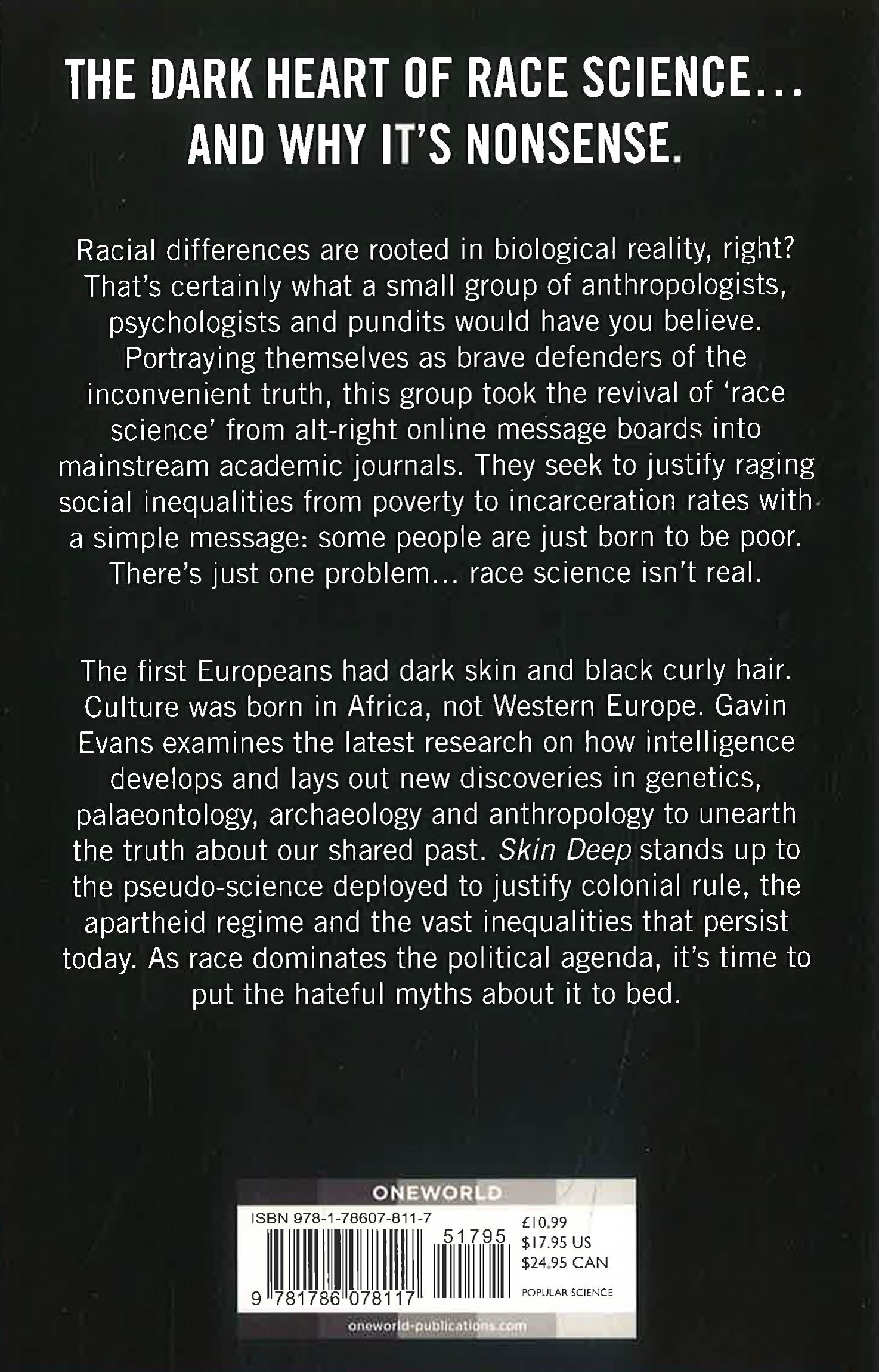 The first Europeans had dark skin and black curly hair. Culture was born in Africa, not Western Europe. Gavin Evans examines the latest research on how intelligence develops and laying out new discoveries in genetics, palaeontology, archaeology and anthropology to unearth the truth about our shared past. Skin Deep stands up to the pseudo-science deployed to justify colonial rule, the apartheid regime and the vast inequalities that persist today. As race dominates the political agenda, it’s time to put the hateful myths about it to bed.