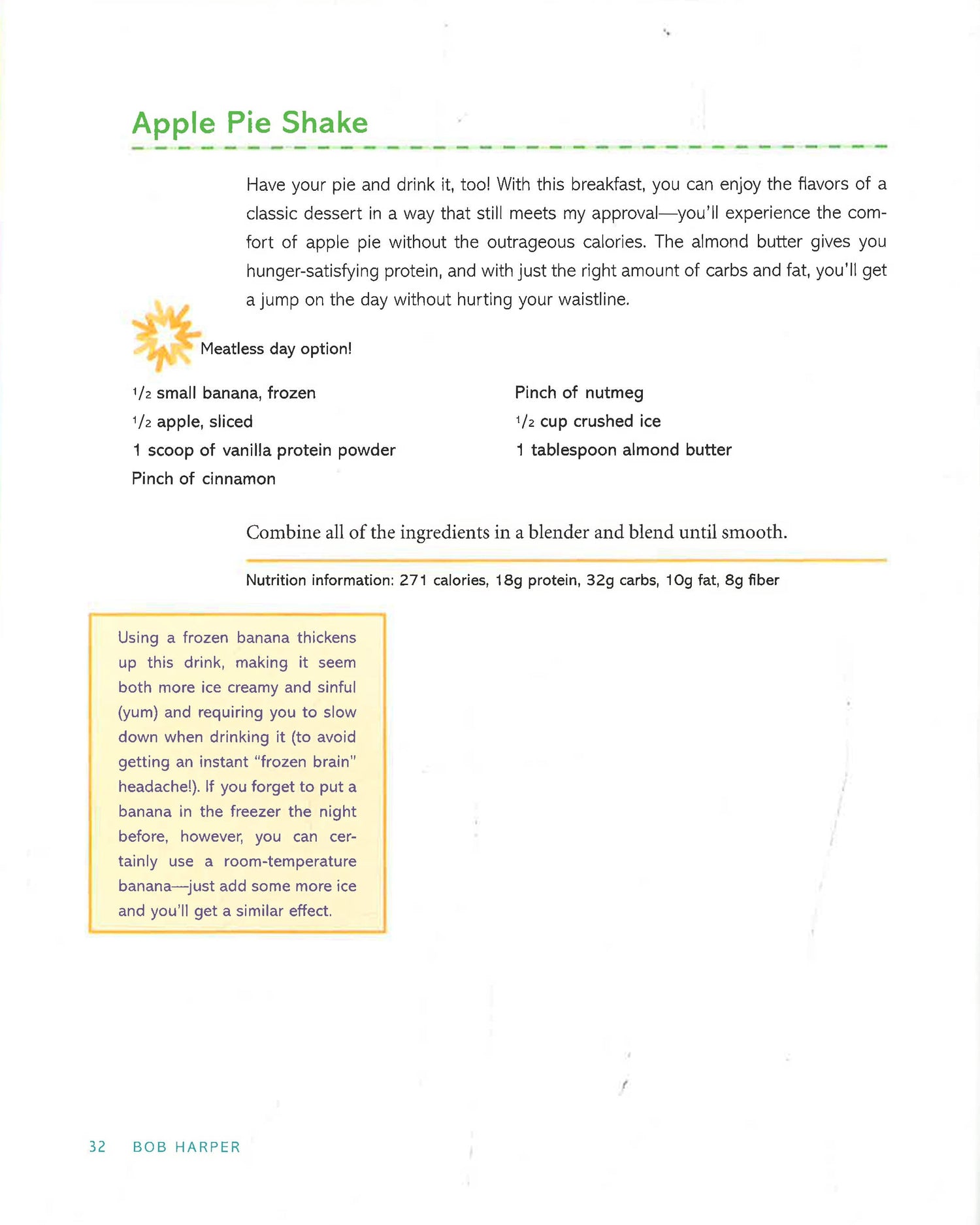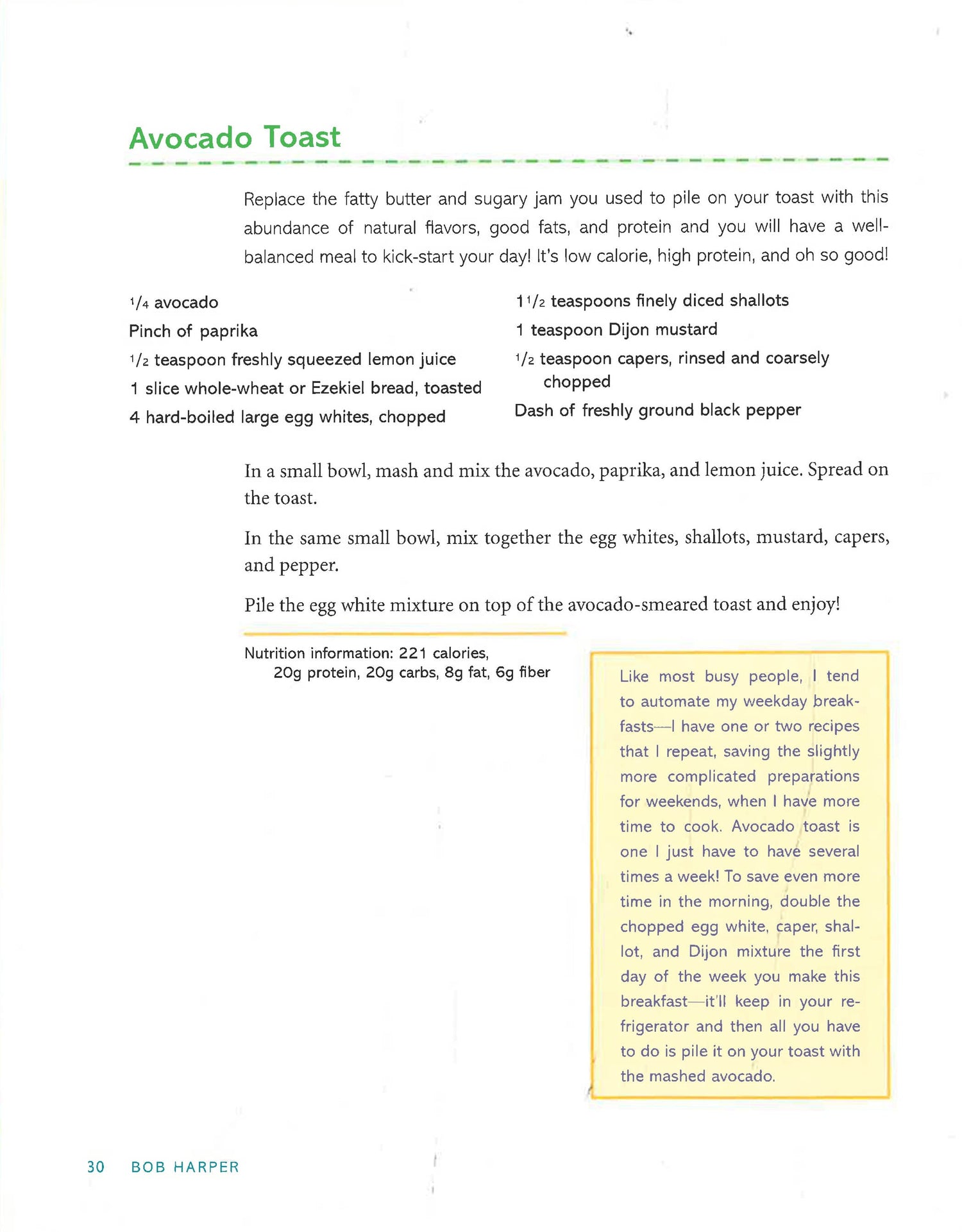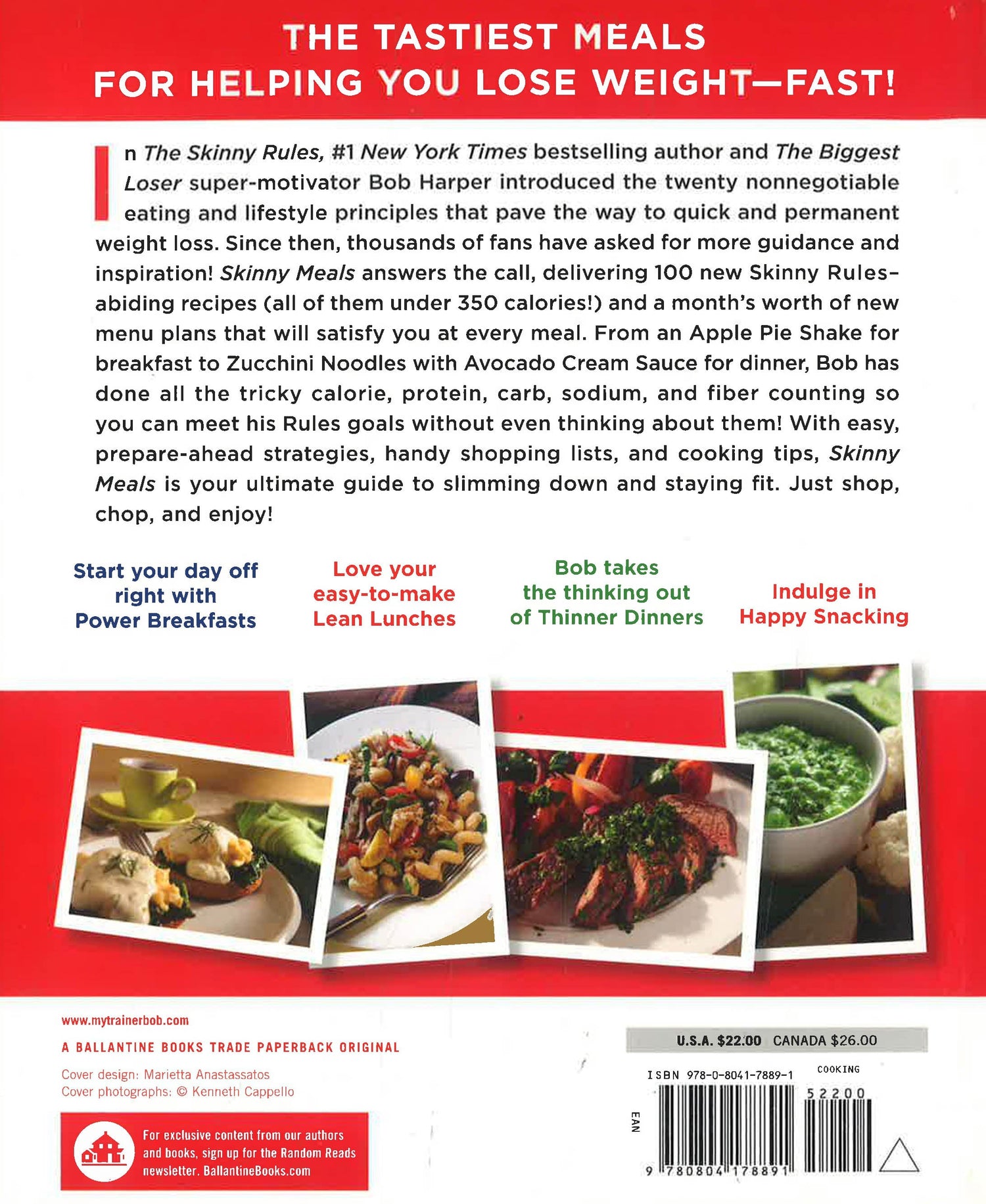 In The Skinny Rules, super-motivator Bob Harper introduced the twenty nonnegotiable eating and lifestyle principles that pave the way to quick and permanent weight loss. Since then, thousands of fans asked for more guidance and inspiration! Skinny Meals answers the call, delivering 100 new Skinny Rules–abiding recipes (all of them under 350 calories!) and a month’s worth of new menu plans that will satisfy you at every meal. From an Apple Pie Shake for breakfast to Zucchini Noodles with Avocado Cream Sauce for dinner, Bob has done all the tricky calorie, protein, carb, sodium, and fiber counting so you can meet his Rules goals without even thinking about them! With easy, prepare-ahead strategies, handy shopping lists, and cooking tips, Skinny Meals is your ultimate guide to slimming down and staying fit. Just shop, chop, and enjoy!