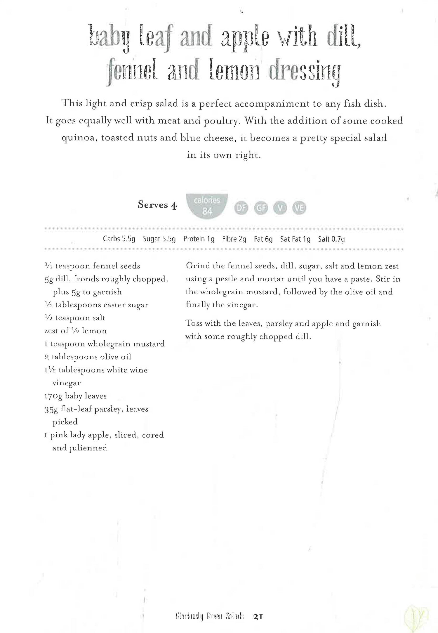 Salads are perfect for big-flavour meals, but pre-made ones are often covered with sugary dressings and full of preservatives for extended shelf life, so Kathryn Bruton has ramped up the health-factor with her range of skinny salads to suit everyone, whether they want something warming and comforting, refreshing and revitalising or all-out wow. Chapters cover Gloriously Green, Comfort, Simple, Classics, Show-Off and Fruit Salads, and include gluten and dairy-free, vegetarian and vegan recipes. Plus there's a section with extra-good-for-you dressings, condiments and pickles. From warming Kofta Salad, a `Wind me Down' Winter's Evening Salad and tasty Spiced Roasted Plum Salad to a twist on the classic, Caesar Salad with Purple Kale, Kathryn minimises the use of sugary, heavy dressings and bland leaves and brings fresh, nutrient-packed ingredients. Each salad is less than 300 calories per portion but still jam-packed with flavour.
