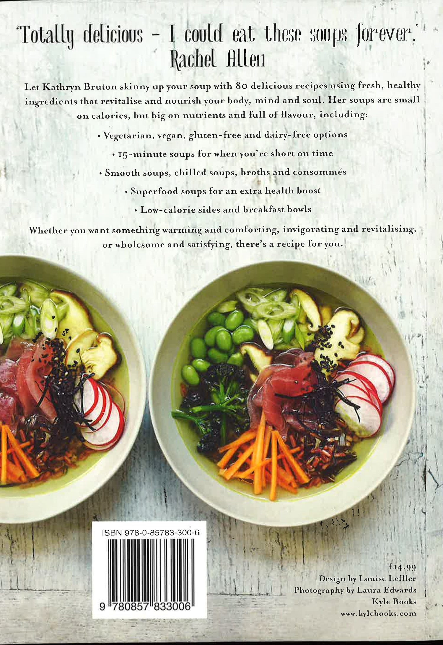 Soups are perfect for low-calorie, big-flavour meals and Kathryn Bruton has created a range of skinny soups to suit everyone, whether they want something warming and comforting, invigorating and revitalising or wholesome and satisfying. Chapters cover Smooth Soups, Broths & Consommes,15-Minute Soups, Grains & Pulses and Superfood Soups, and include vegetarian, gluten-free, vegan and dairy free recipes. From soothing Spinach, Oat & Hazelnut Milk Soup, restorative Hangover Soup and tasty Turkey& Quinoa Soup with Peas to 15-minute Mushroom Soup With a Kick, Kathryn minimises the use of cream and substitutes fattening butter with nutritious olive, rapeseed and nut oils, so that every soup in Skinny Soups is less than 300 calories per portion, but still jampacked with flavour.