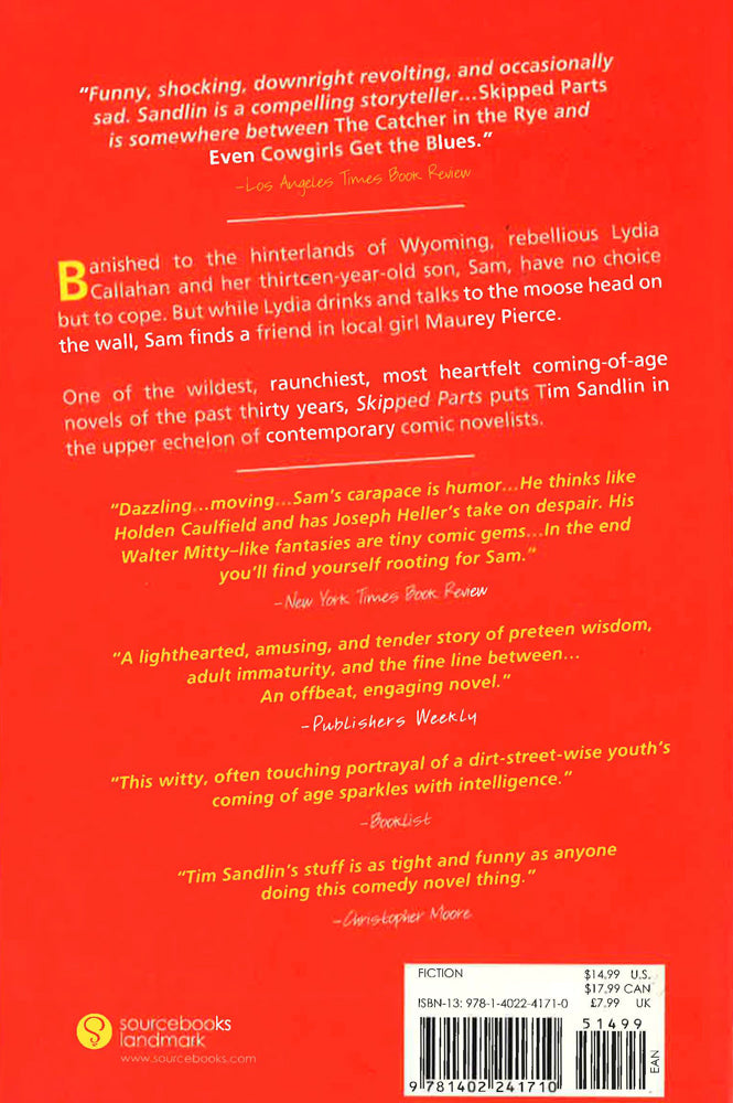 One of the wildest, raunchiest, most heartfelt coming-of-age novels of the past thirty years, Skipped Parts puts Tim Sandlin in the upper echelon of contemporary comic novelists.
