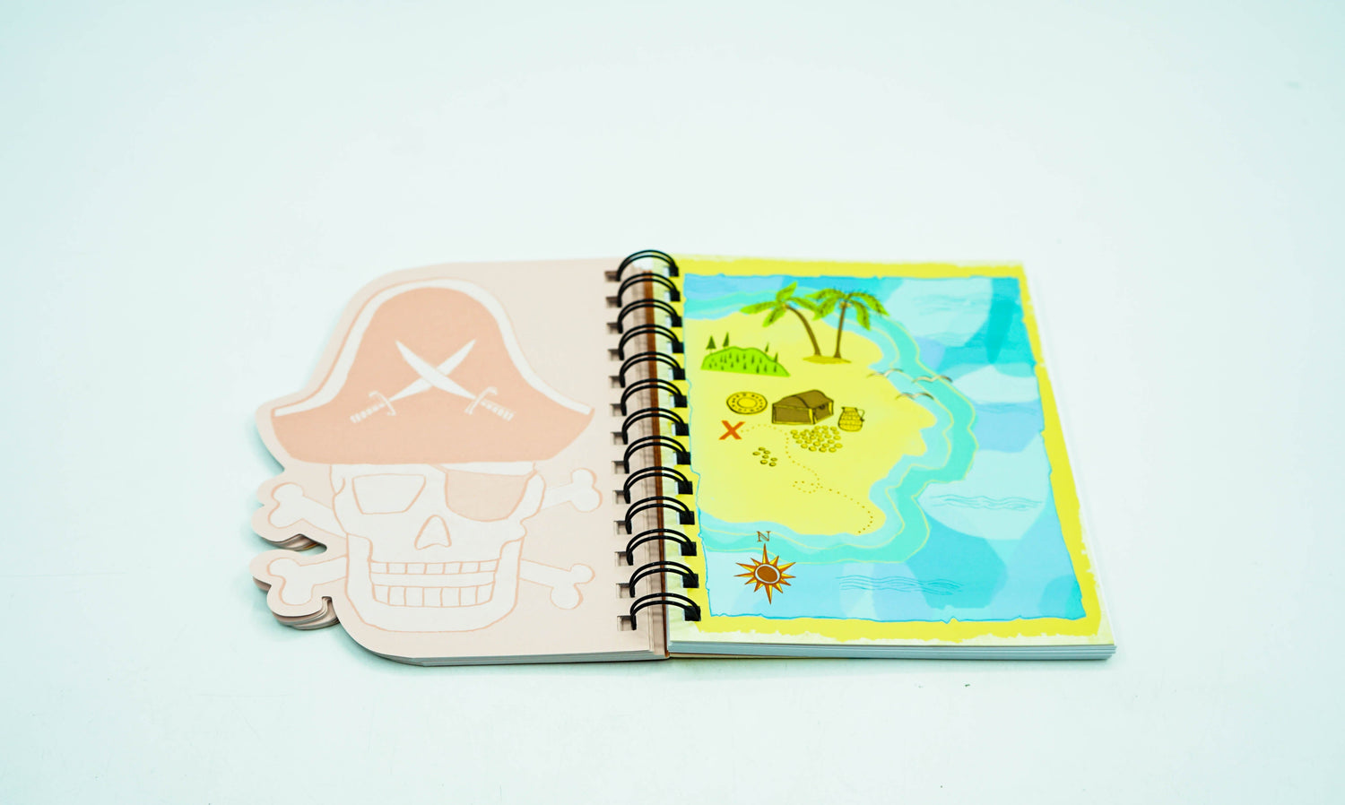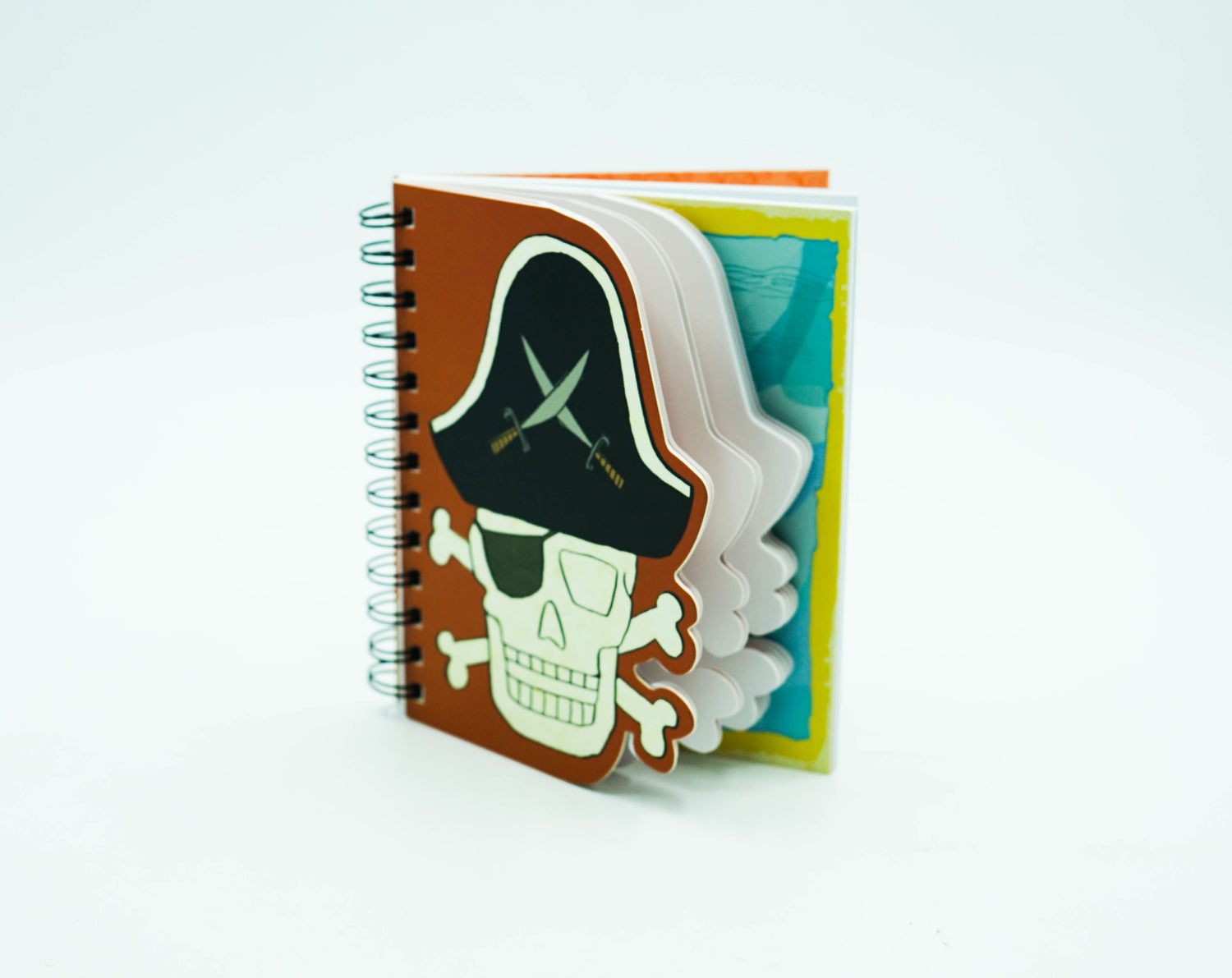 Encourage literary and artistic creativity with a two section Skull & Crossbones Layered Journal from Mudpuppy. The front section is die cut blank sketch paper; the back section is lined writing paper, for 120 pages in all. Pirate illustrations by Jon Cannell.