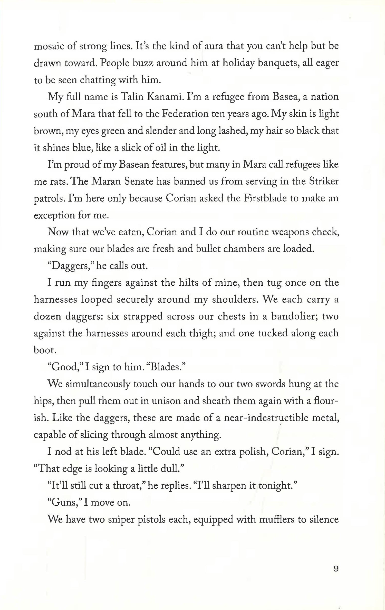 Strikers are loyal. With unparalleled, deadly fighting skills. With a willingness to do anything--including sacrifice their own lives--to defend Mara, the world's last free nation. But to the very people she protects, Talin is seen as an outcast first and a Striker second.
