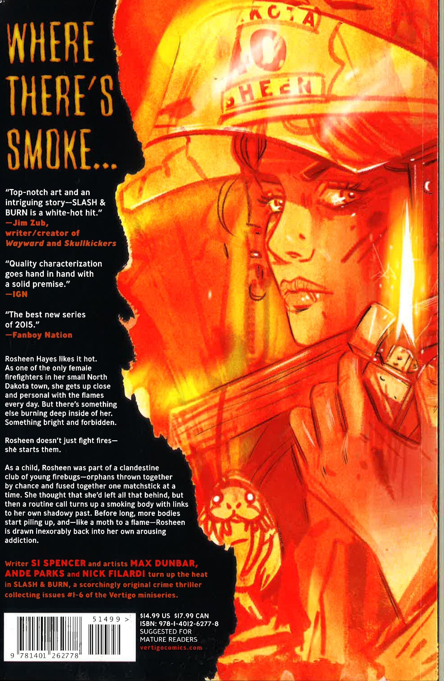 Another day, another hot date. Firefighter Rosheen Hayes takes her relationships with conflagration seriously, whether it's the trigger-happy burn victim with his sights on her partner or a chance encounter igniting memories of arson at the orphanage. But is she the super-sleuth fire whisperer or twisted firestarter? This new ongoing series from writer Si Spencer has all the mystery and intrigue of his hit Vertigo miniseries BODIES. With art by Max Dunbar, SLASH & BURN is a tricky thriller that explores both the excitement and the consequences of succumbing to one's darkest impulses.
