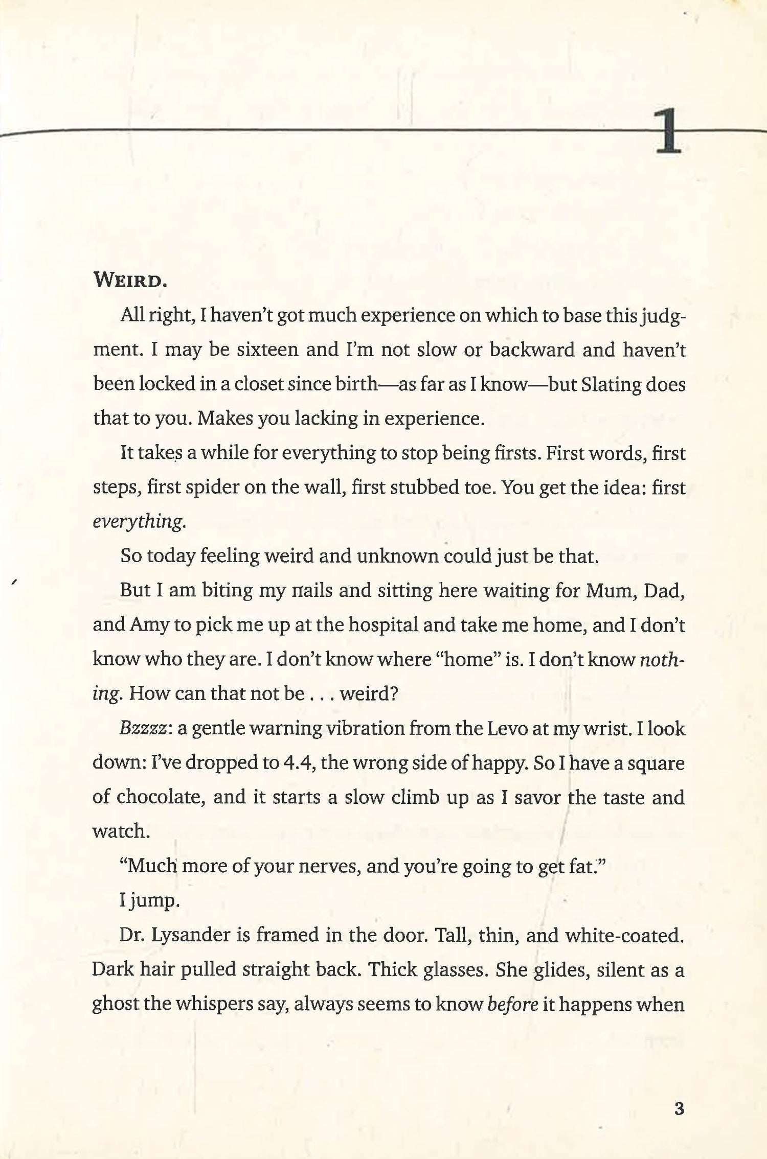 The gripping first book of a rebellious trilogy about truth, power, and impossible choices, perfect for fans of Divergent and Legend. Kyla's memory has been erased, her personality wiped blank, her memories lost forever. She's been slated. The government claims that she was a terrorist and they are giving her a second chance--if she plays by their rules. But scenes from the past haunt her as she tries to adjust to a new life, family, and school, leaving her unsettled. Who is she really? And if only criminals are meant to be slated, why are so many other teens disappearing? As she and her friend Ben seek answers, Kyla is torn between the need to know more and her instinct for self-preservation.