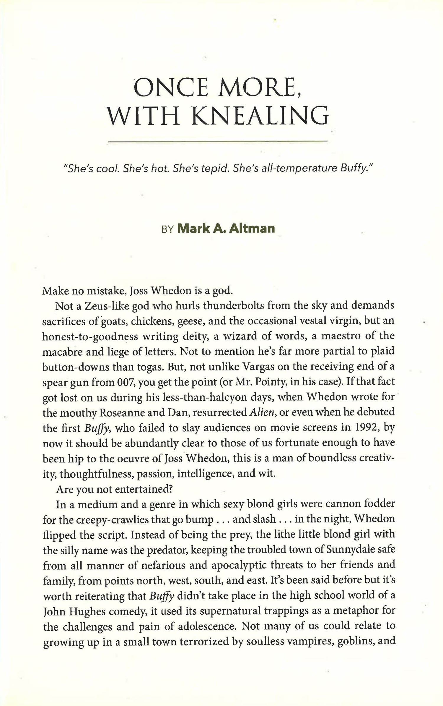 TV experts Edward Gross and Mark Altman talked to almost 100 writers, producers, directors, filmmakers, sociologists and stars from Buffy The Vampire Slayer and Angel in new and vintage interviews from their personal archives, among them: