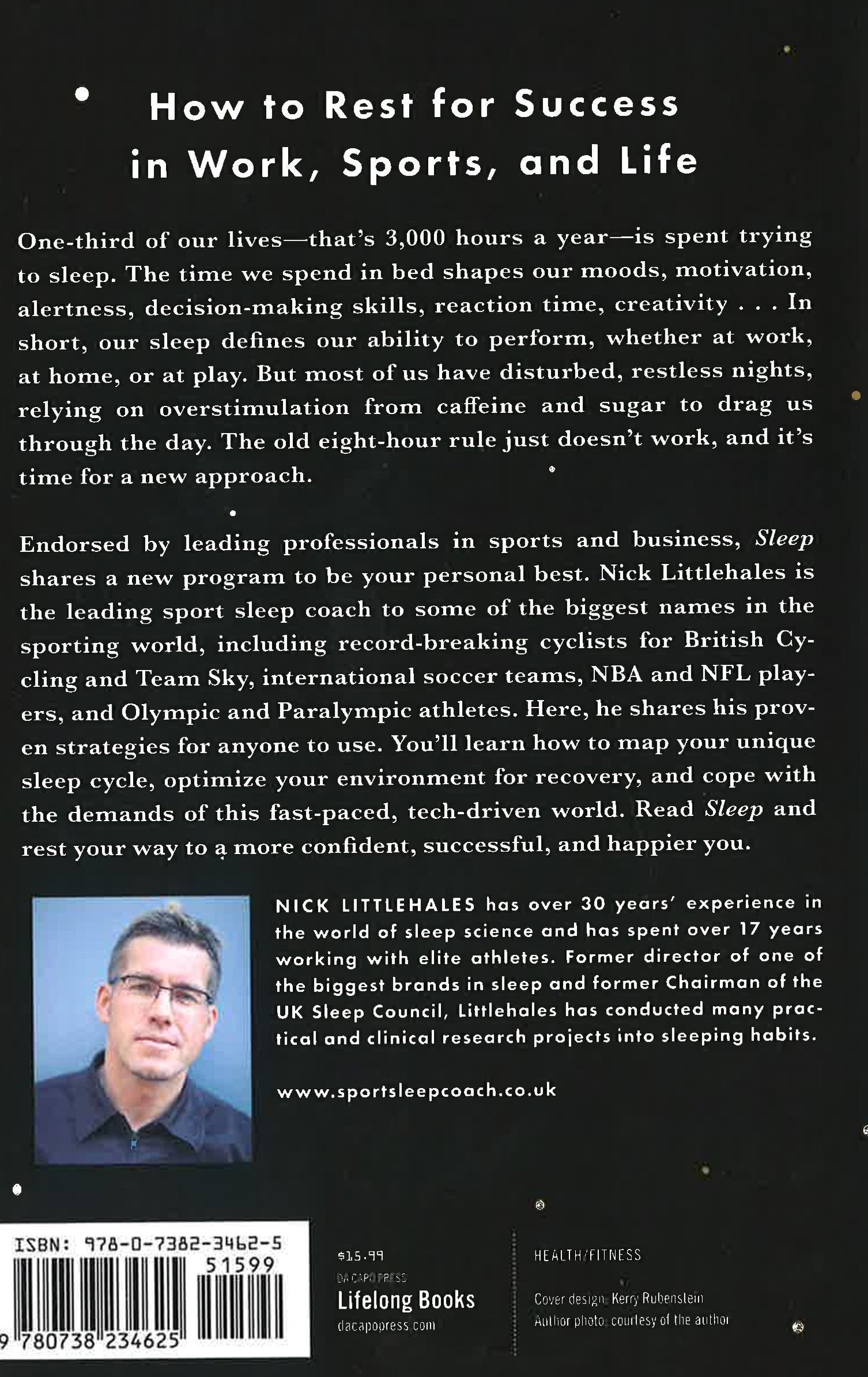 Proven solutions for a better night's sleep, from the "sleep guru" to elite athletes--rest for success in work, sports, and life.One-third of our lives--that's 3,000 hours a year--is spent trying to sleep. The time we spend in bed shapes our moods, motivation, alertness, decision-making skills, reaction time, creativity...in short, our ability to perform, whether at work, at home, or at play. But most of us have disturbed, restless nights, relying on over-stimulation from caffeine and sugar to drag us through the day. The old eight-hour rule just doesn't work, and it's time for a new approach.Endorsed by leading professionals in sports and business, Sleep shares a new program to be your personal best. Nick Littlehales is the leading sport sleep coach to some of the biggest names in the sporting world, including record-breaking cyclists for British Cycling and Team Sky, international soccer teams, NBA and NFL players, and Olympic and Paralympic athletes. Here, he shares his proven strategies for anyone to use. You'll learn how to map your unique sleep cycle, optimize your environment for recovery, and cope with the demands of this fast-paced, tech-driven world. Read Sleep and rest your way to a more confident, successful, and happier you.