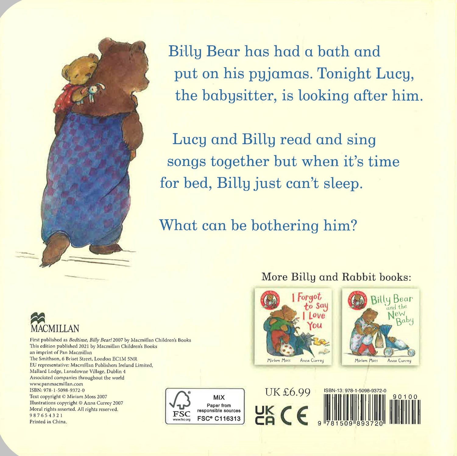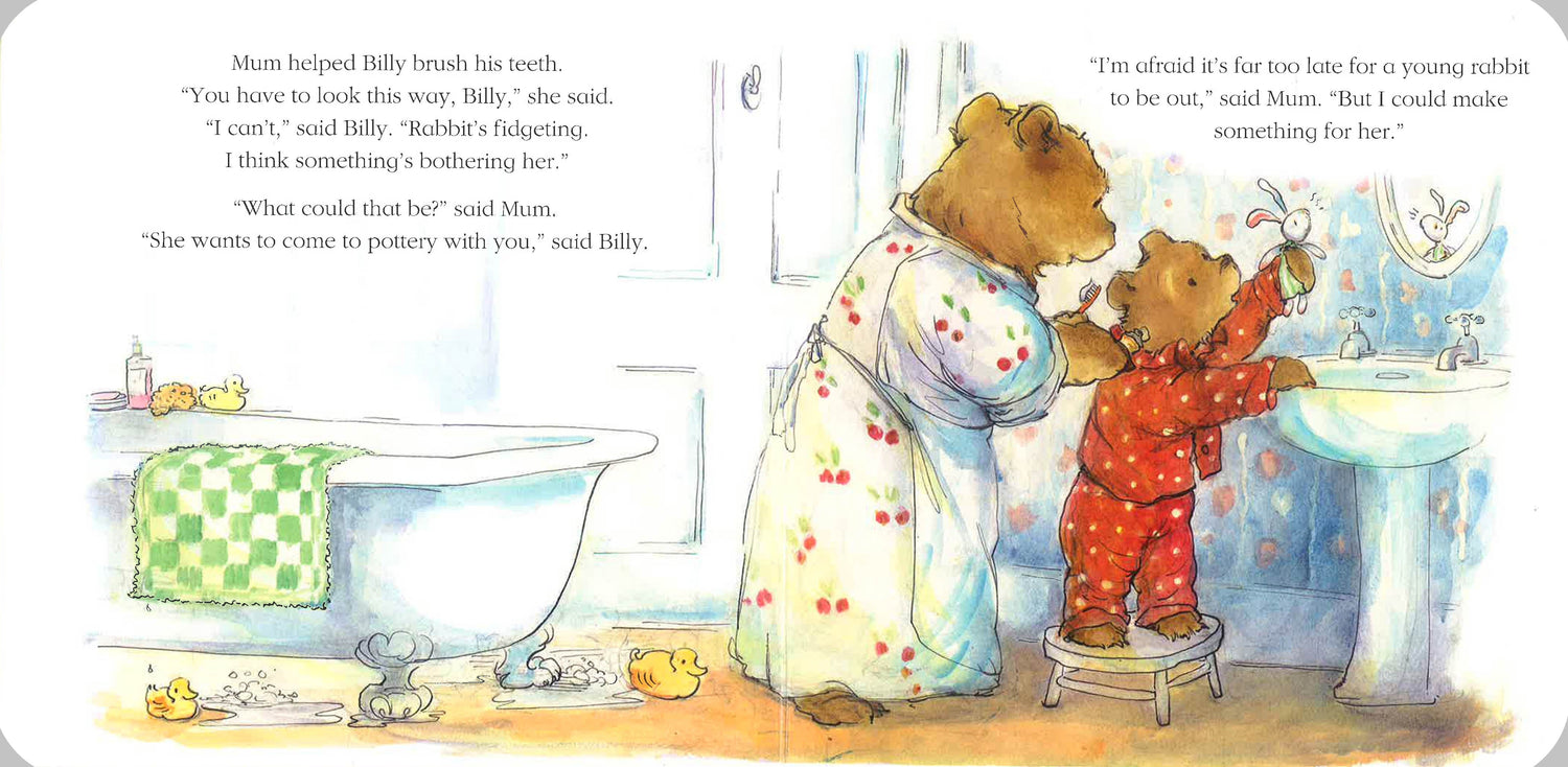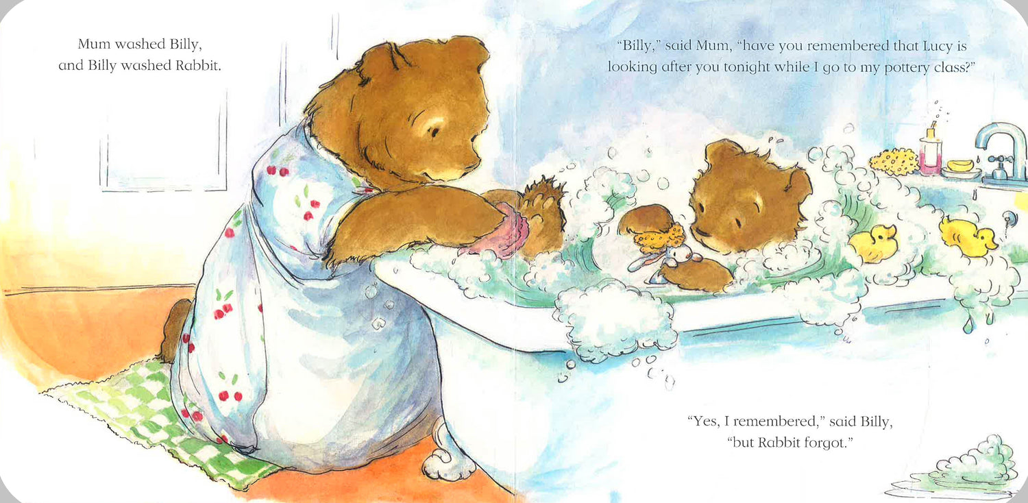 Billy Bear has brushed his teeth, had a bath and put on his pyjamas. Tonight is Mum’s pottery class so her friend Lucy is looking after Billy. Lucy reads Billy a story and they sing songs together, but when it’s time for bed Billy just can’t sleep. What can be bothering him?