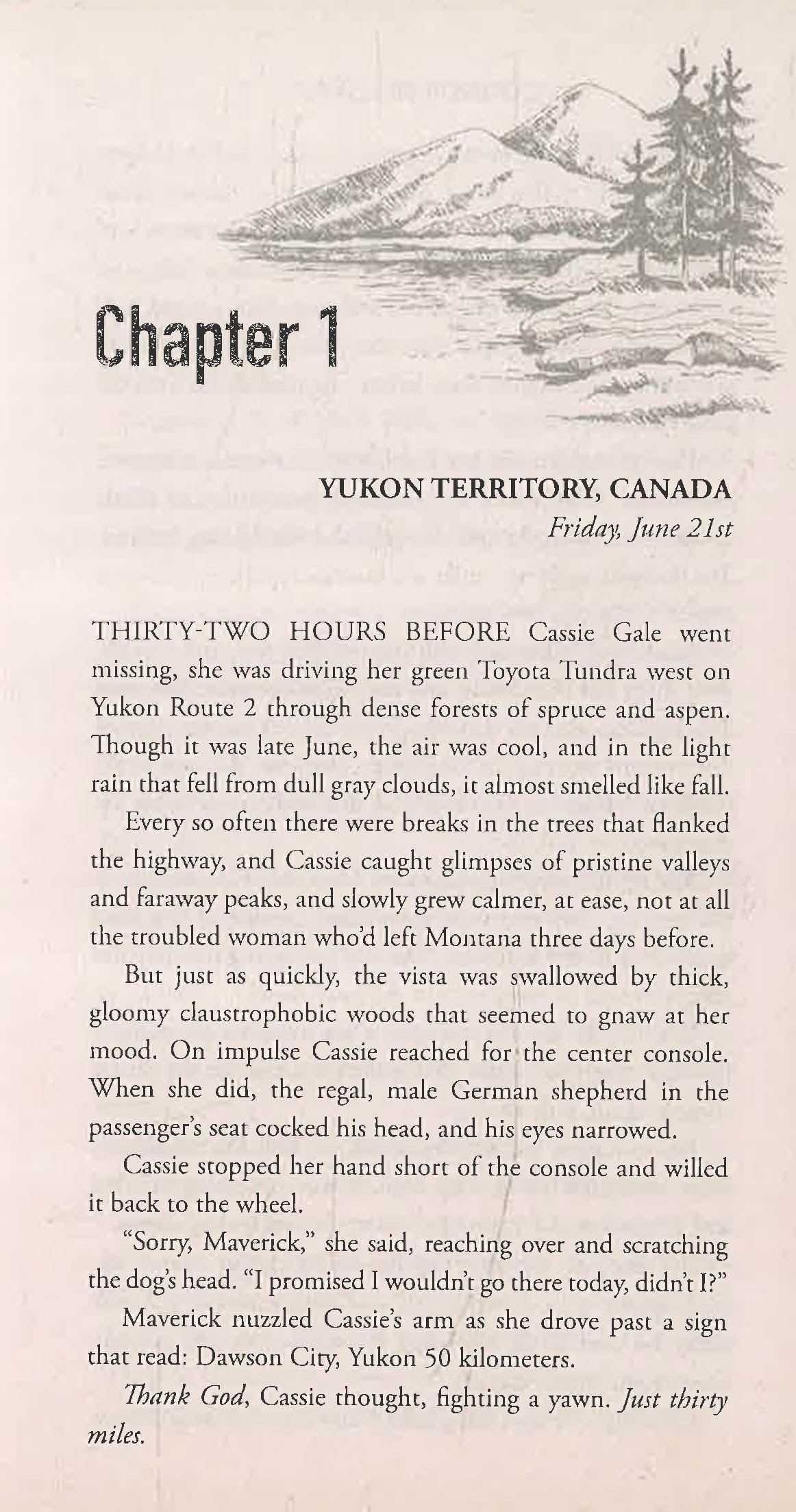 After her young husband’s untimely death, Army veteran Cassie Gale decides to take a few days of solitude in the Alaskan wilderness before she starts her new job. But when she fails to show up on her first day and her dog is discovered injured at her wrecked campsite, her father knows that this is much more than a camping trip gone awry.