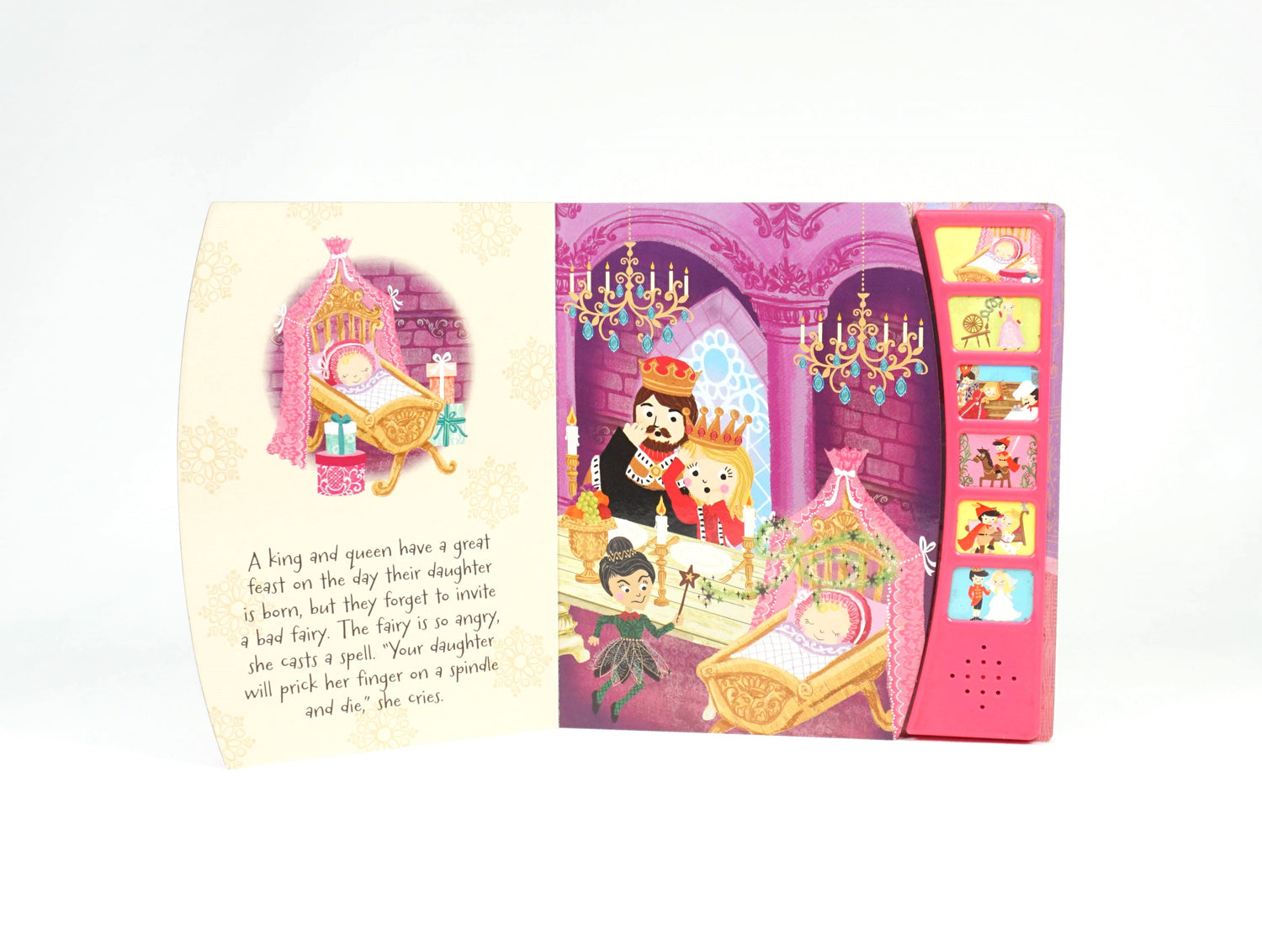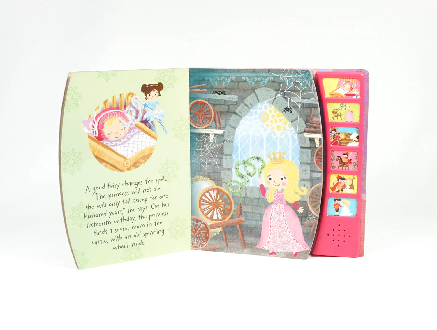 There's nothing better than hearing a good story read out loud. The six sound buttons will play you the classic fairytale and take you to a world of a magical spiining wheel, a sleepy princess and a dashing young prince.