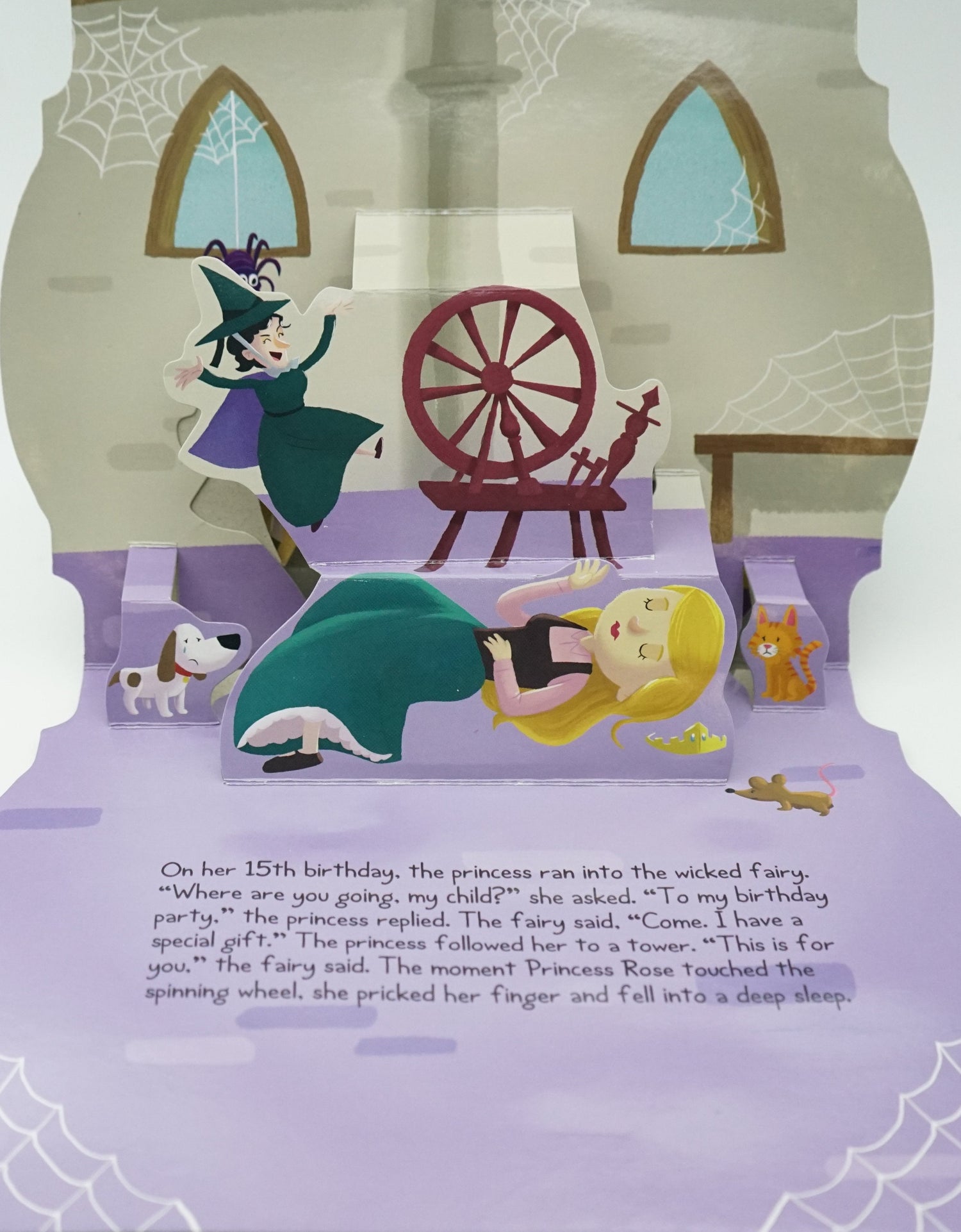 Books are made of medium weight heave cardboard and pictures pop up when the pages are turned. Great stories and pop ups are sure to delight children.