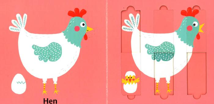 Babies will love looking at the bright pictures in this delightful book and seeing what appears when they move the sliders. The simple and robust sliding panels transform the pictures to reveal a chick hatching, baby goats peeping out of a barn and more, and there are finger trails to follow and animal noises to imitate too. Brilliant for developing essential motor skills and hand-eye coordination, and full of vivid colours, stylish illustrations and friendly animals.
