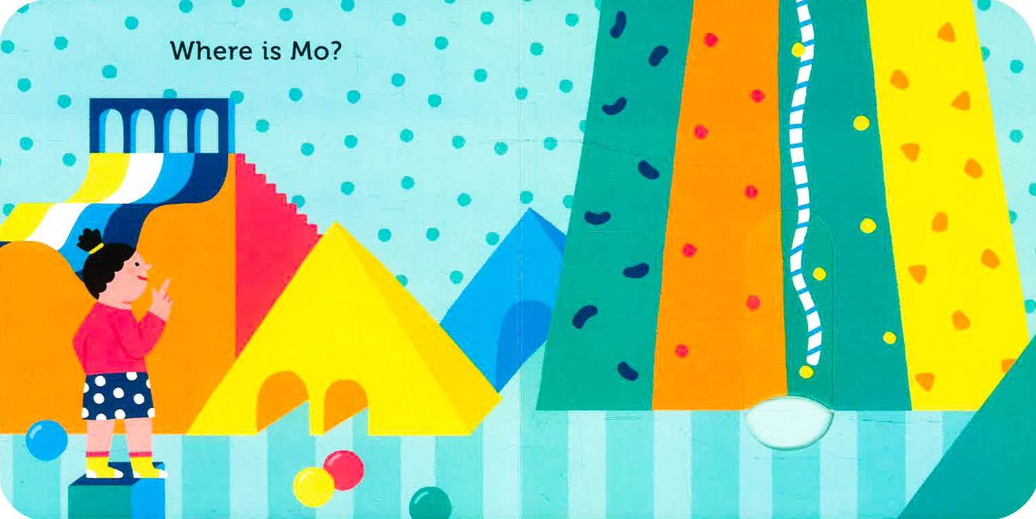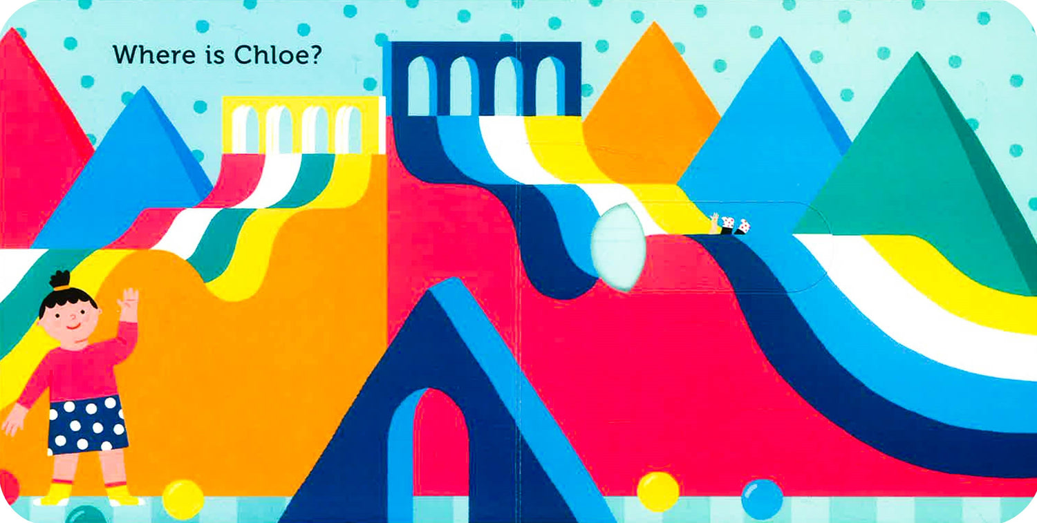 Discover hiding friends throughout the play structures of a colourful fun house. Where are Olly, Chloe, Mo, Ella and Charlie hiding? Slide the tab in each page and out they pop - from the ball pit, the bumpy slide, climbing wall, crawling tunnel and twirling slide. And where am I? Jumping on the trampoline, of course!