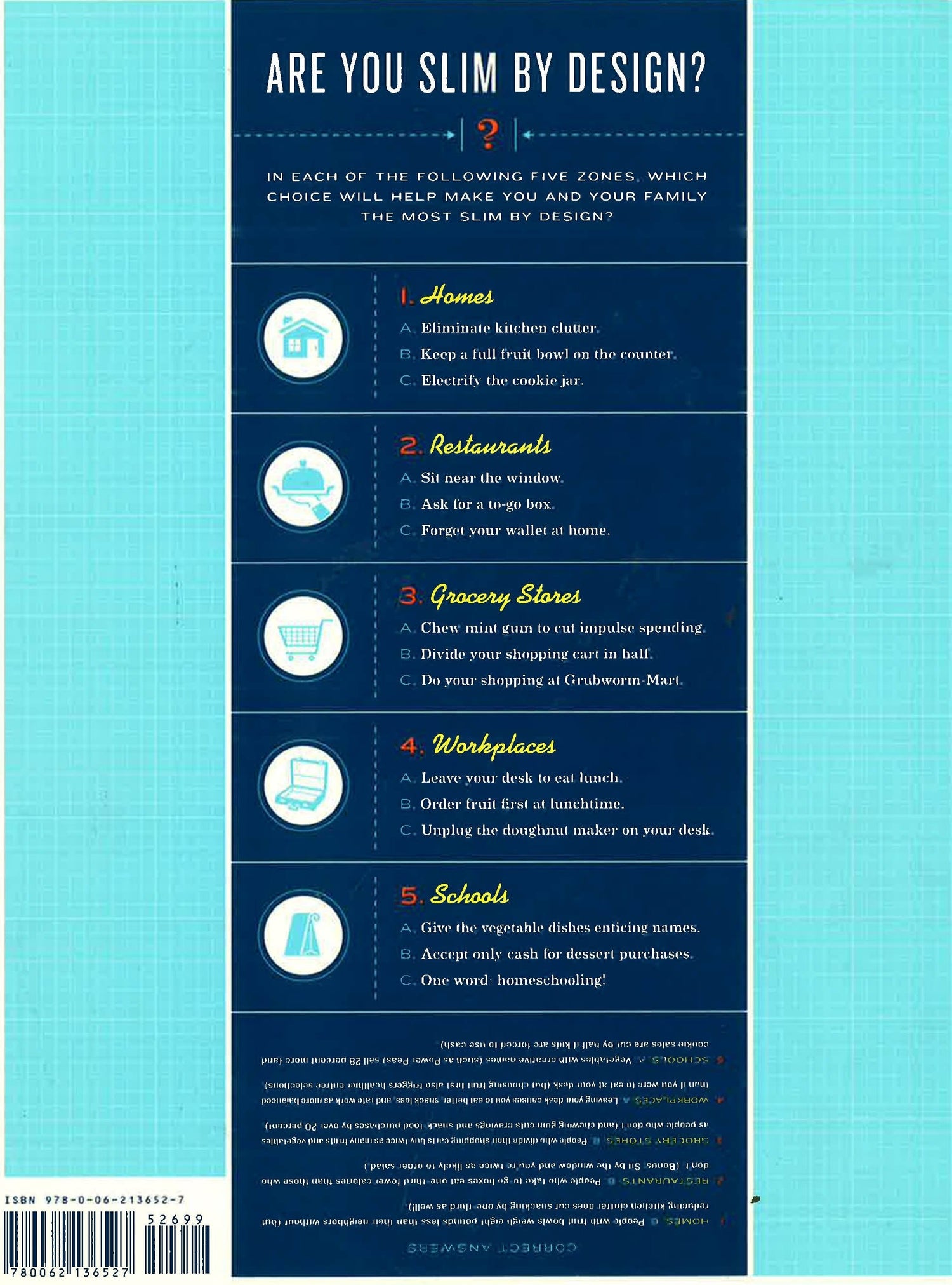 In Slim by Design, leading behavioral economist, food psychologist, and bestselling author Brian Wansink introduces groundbreaking solutions for designing our most common spaces--schools, restaurants, grocery stores, and home kitchens, among others--in order to make positive changes in how we approach and manage our diets. Anyone familiar with Wansink's Mindless Eating knows this is not a typical diet book. Wansink shares his scientific approach to eating, providing insight and information, so we can all make better choices when it comes to food.The pioneer of the Small Plate Movement, Brian Wansink presents compelling research conducted at the Food and Brand Lab at Cornell University by way of cartoons, drawings, charts, graphs, floor plans, and more. Slim by Design offers innovative ways to make healthy eating mindlessly easy.