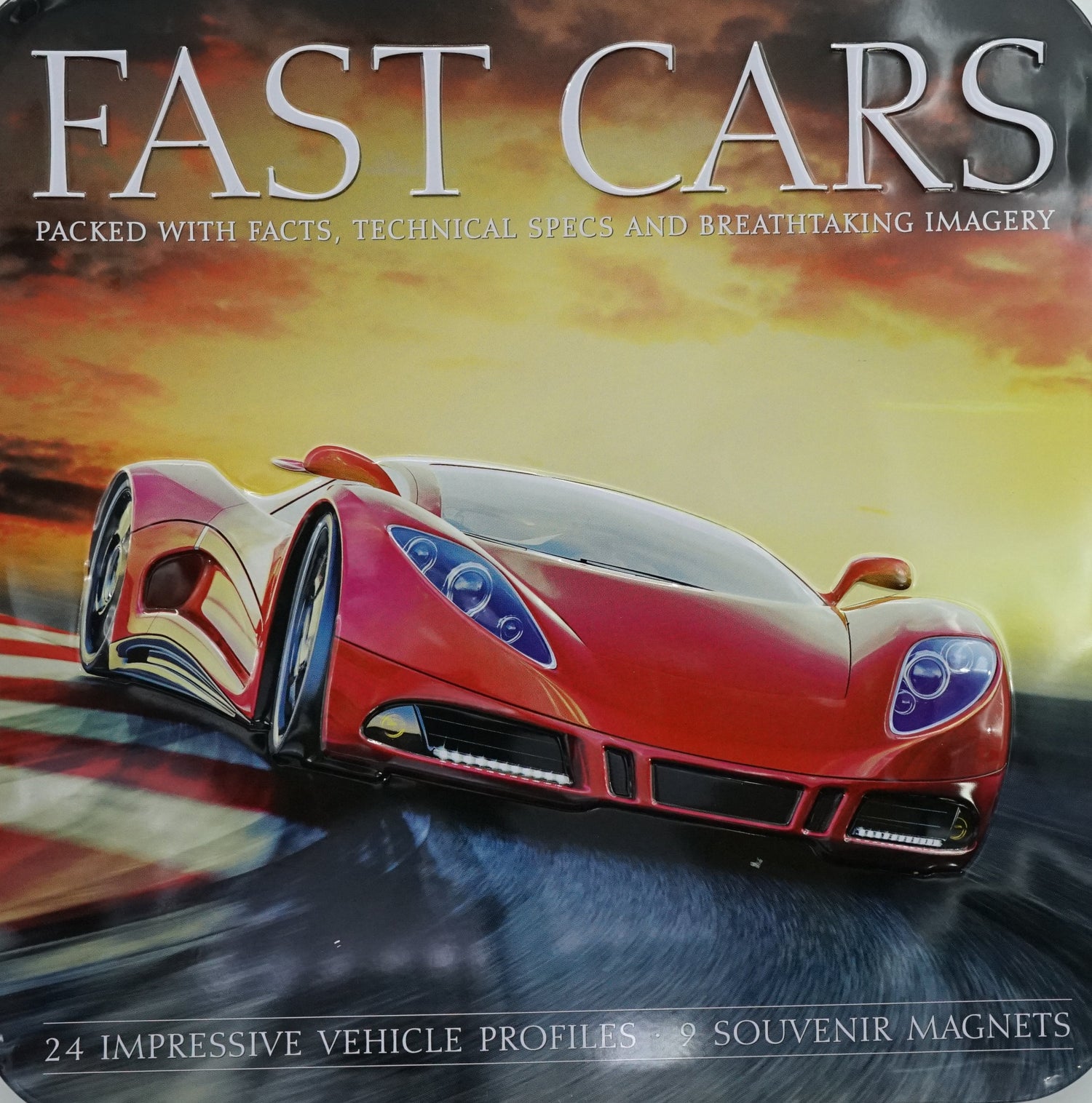 Packed with facts, technical specs and breathtaking imagery. Showcasing the world's most desirable cars, including the Bugatti Veyron and Ferrari LaFerrari, this tin is a must-have for fast car enthusiasts everywhere. Including a set of nine souvenir magnets and a 128-page book packed with fascinating facts, interesting statistics and technical specifications, you will find out all you need to know about each of these showstopping vehicles. With breathtaking images of each car, this essential tin makes a great gift for car fanatics.