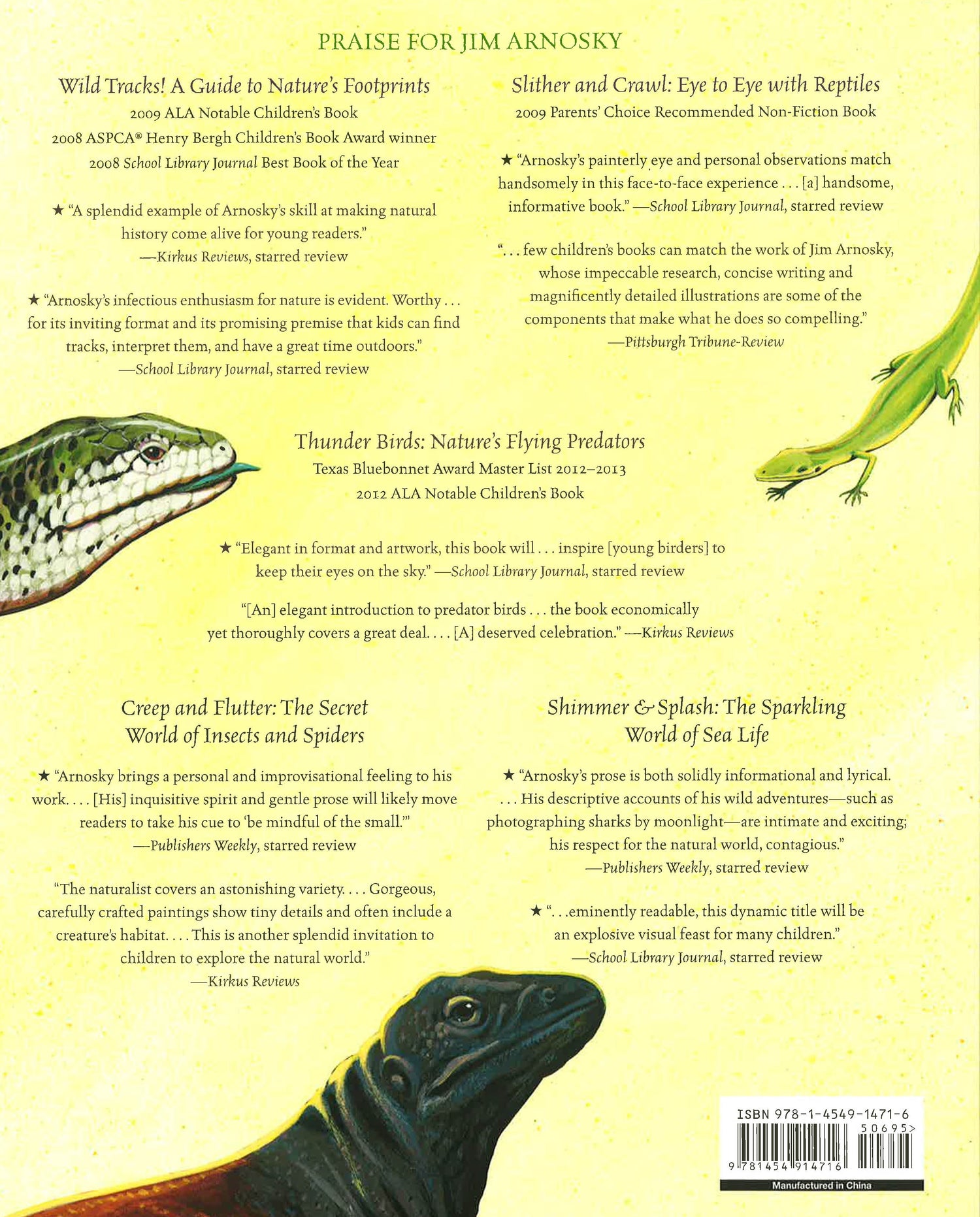 Snake fangs, alligator claws, and turtle shells - all life size! Go belly down on the ground, eye to reptilian eye, with acclaimed naturalist Jim Arno sky. Through large gatefolds and marvellously detailed, realistic art, he takes kids (safely!) up close and personal with these slithery, crawly creatures. Arno sky explains how to identify venomous snakes and their harmless cousins, where to find a 200-pound lizard, how to avoid becoming an alligator's lunch, and much more. It's the perfect gift for a budding naturalist, animal lover, or artist.