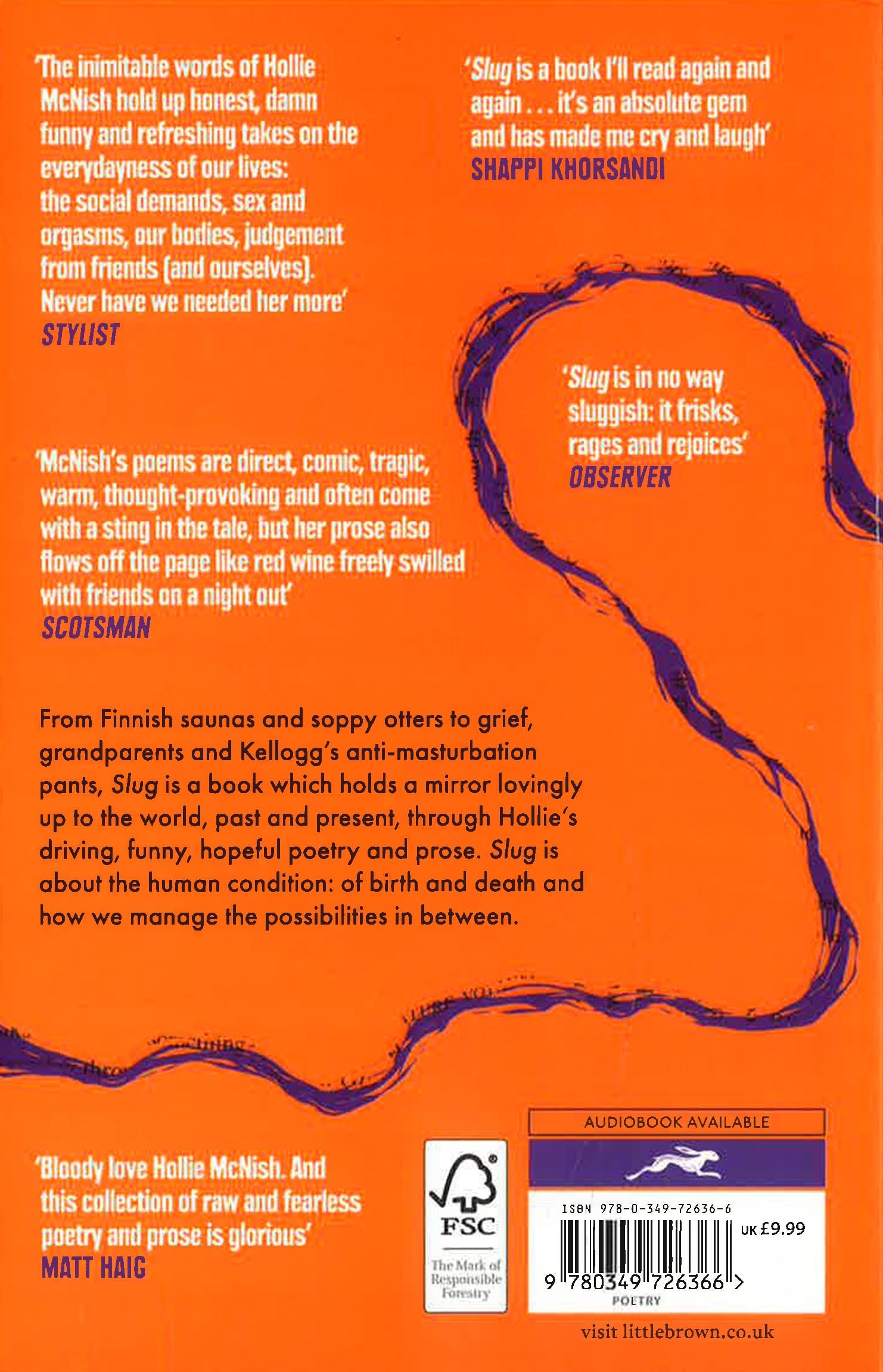 From Finnish saunas and soppy otters to grief, grandparents and Kellogg's anti-masturbation pants, Slug is a book which holds a mirror lovingly up to the world, past and present, through Hollie's driving, funny, hopeful poetry and prose. Slug is about the human condition: of birth and death and how we manage the possibilities in between.