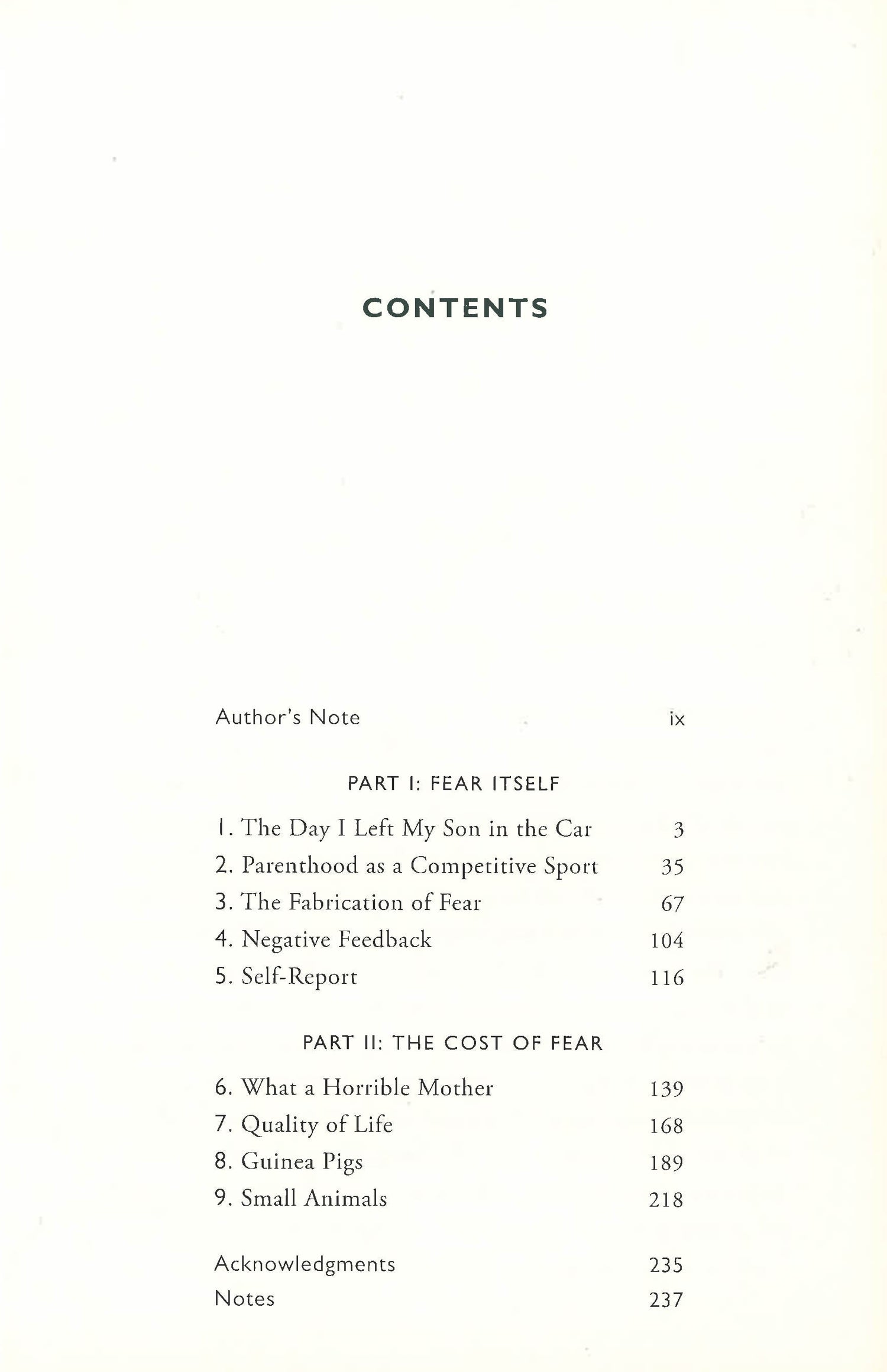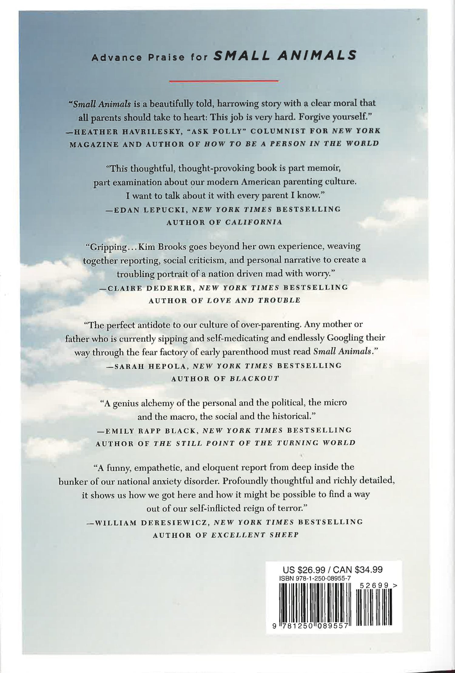 One cool spring morning, Kim Brooks made a split-second decision to leave her four-year old son in the car while she ran into a store. What happened would consume the next several years of her life and ultimately motivated her to begin writing about the broader subject of parenthood and fear. In SMALL ANIMALS, Brooks asks, Of all the emotions inherent in parenting, is there any more universal than or profound than fear? To be a parent is to be afraid. And yet, the objects and intensity of our fear vary based on culture, temperament, and the historical moment in which we live. In the signature style - by turns funny, penetrating, and always illuminating - that has dazzled millions of fans of the essays she publishes in New York Magazine, LennyLetter, Salon, and Buzzfeed, Brooks blends personal memoir, investigative reporting and sociological critique to ask: Why have our notions of what it means to be a good parent changed so radically in the course of a generation? In what ways do these changes impact the lives of parents, children, and the structure of society at large? And what, in the end, does the rise of fearful parenting tell us about our children, our communities, and ourselves? By telling her own story and probing our culture at large, Brooks offers a provocative, compelling portrait of parenthood in American and calls us to examine what we most value in our relationships with our children and one another.