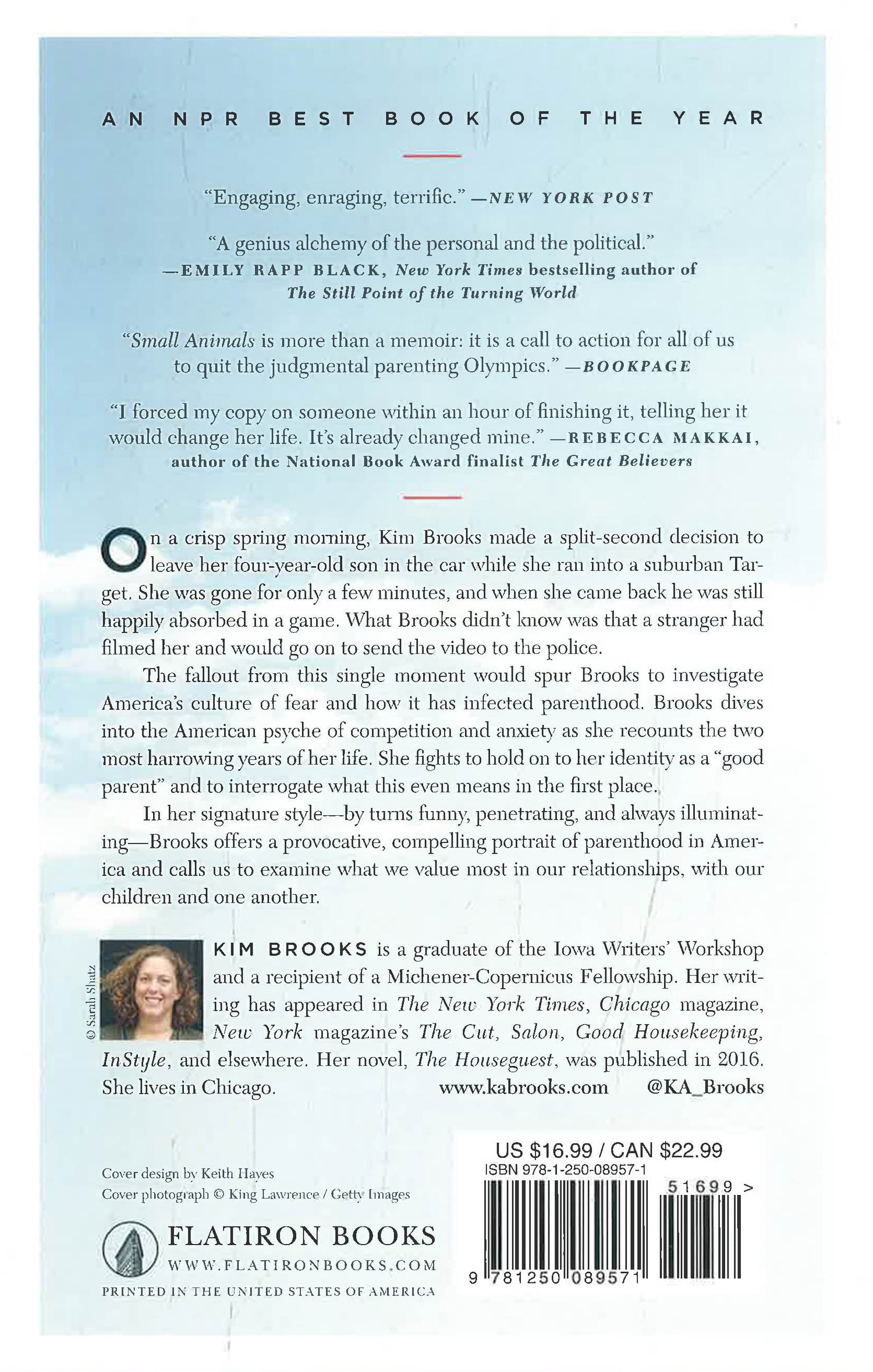 One cool spring morning, Kim Brooks made a split-second decision to leave her four-year-old son in the car while she ran into a store. What happened would consume the next several years of her life and ultimately motivated her to begin writing about the broader subject of parenthood and fear. In Small Animals, Brooks asks, Of all the emotions inherent in parenting, is there any more universal or profound than fear? To be a parent is to be afraid. And yet, the objects and intensity of our fear vary based on culture, temperament, and the historical moment in which we live. In the signature style - by turns funny, penetrating, and always illuminating - that has dazzled millions of fans of the essays she publishes in New York Magazine, LennyLetter, Salon, and Buzzfeed, Brooks blends personal memoir, investigative reporting and sociological critique to ask: Why have our notions of what it means to be a good parent changed so radically in the course of a generation? In what ways do these changes impact the lives of parents, children, and the structure of society at large? And what, in the end, does the rise of fearful parenting tell us about our children, our communities, and ourselves? By telling her own story and probing our culture at large, Brooks offers a provocative, compelling portrait of parenthood in American and calls us to examine what we most value in our relationships with our children and one another.