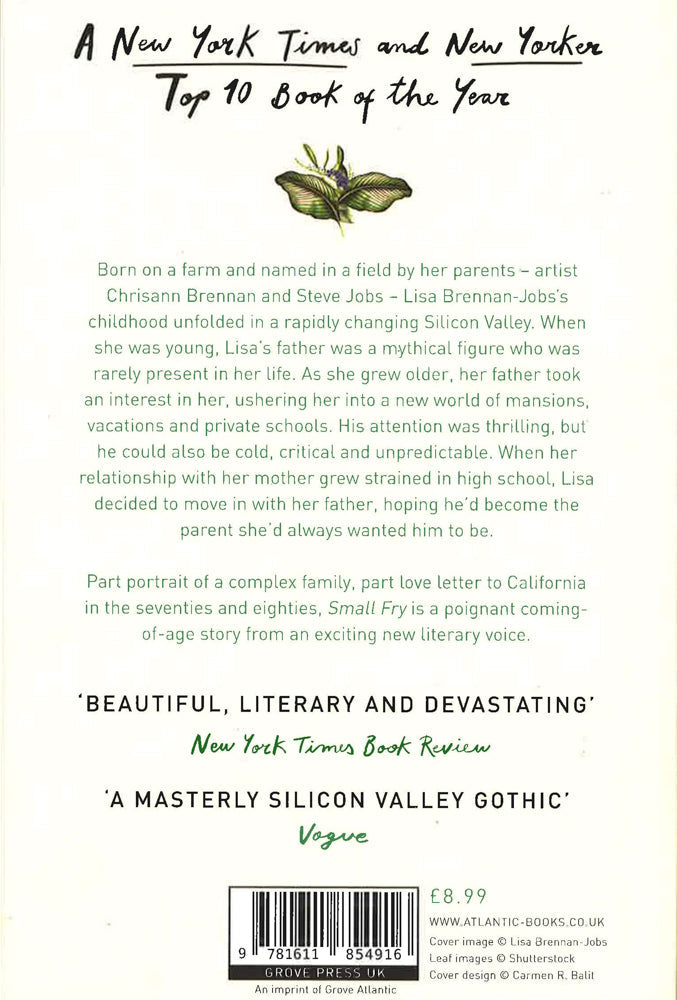 Small Fry is Lisa Brennan-Jobs's poignant story of a childhood spent between two imperfect but extraordinary homes. Scrappy, wise and funny, young Lisa is an unforgettable guide through her parents' fascinating and disparate worlds. Part portrait of a complex family, part love letter to California in the seventies and eighties, Small Fry is an enthralling book by an insightful new literary voice.