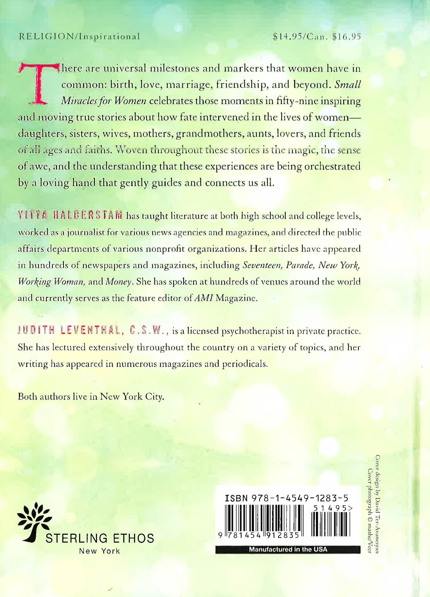 Sometimes fate steps in to change the lives of women in unforgettable ways, affecting them as wives, mothers, daughters, sisters, aunts, lovers, and friends. One of the most popular books in the Small Miracles series, this beautifully repackaged and expanded volume collects 50 unforgettable and even divine stories of coincidence experienced by women from all walks of life.