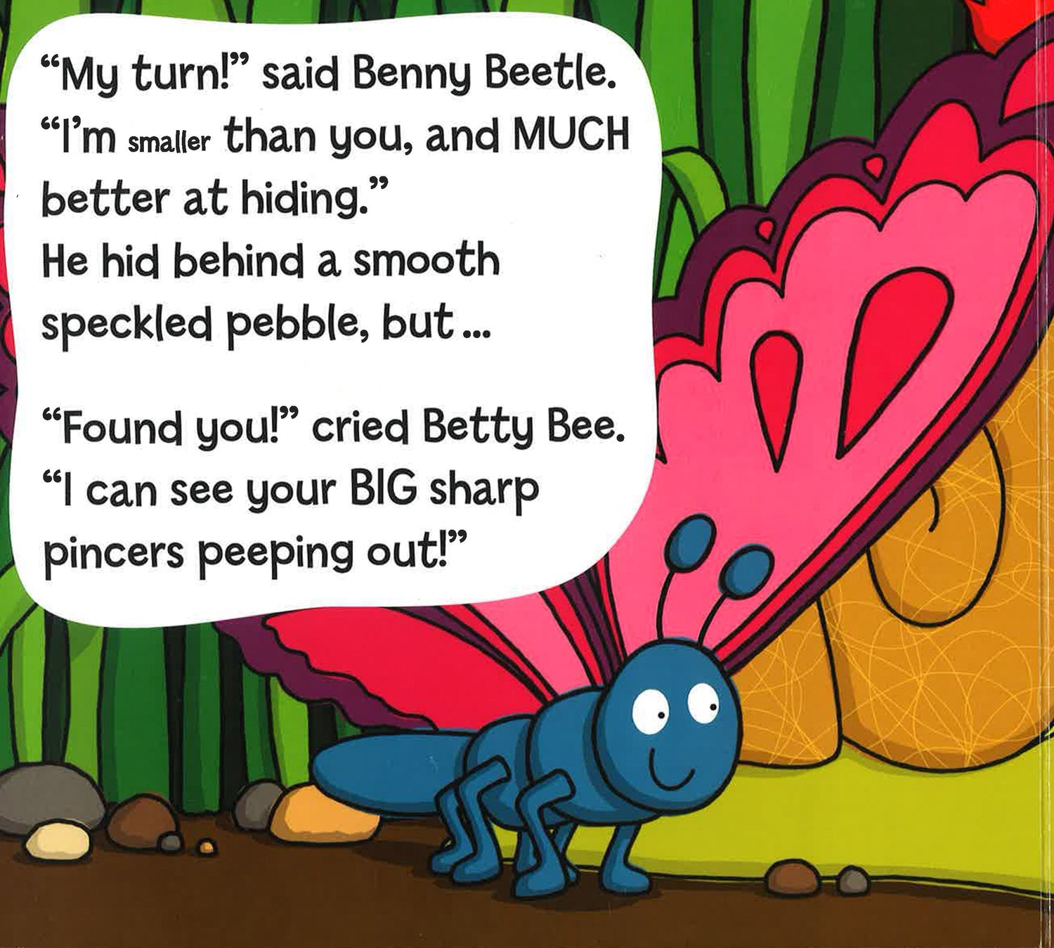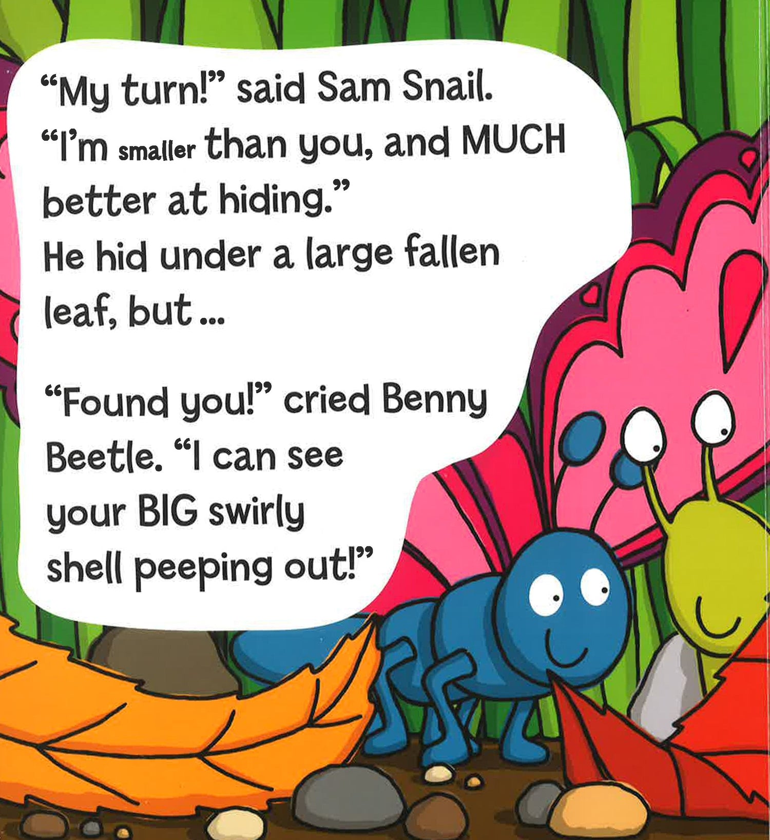The bugs are having great fun playing hide and seek in the garden, but no one has seen little Alfie Ant all day - where could he have got to?
