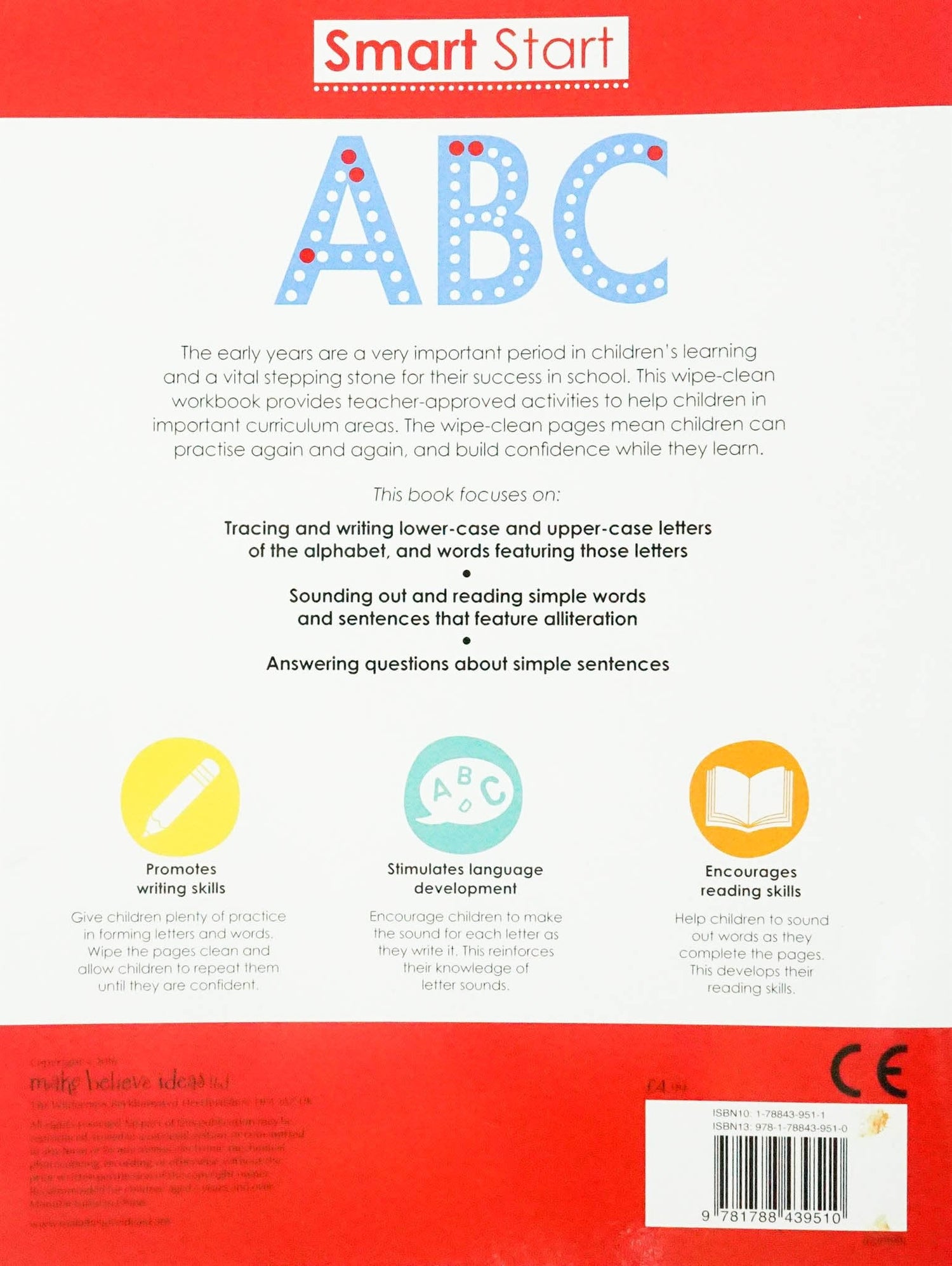 The early years are a very important period in children's learning and a vital stepping stone for their success in school. This wipe-clean workbook provides teacher-approved activities to help children in important curriculum areas. The wipe clean pages mean children can practise again and again and build confidence while they learn. This book focues on: Tracing and writing lower-case and upper-case letters of the alphabet and words featuring those letters, Sounding out and reading simple words and sentences that feature alliteration and Answering questions about simple sentences.