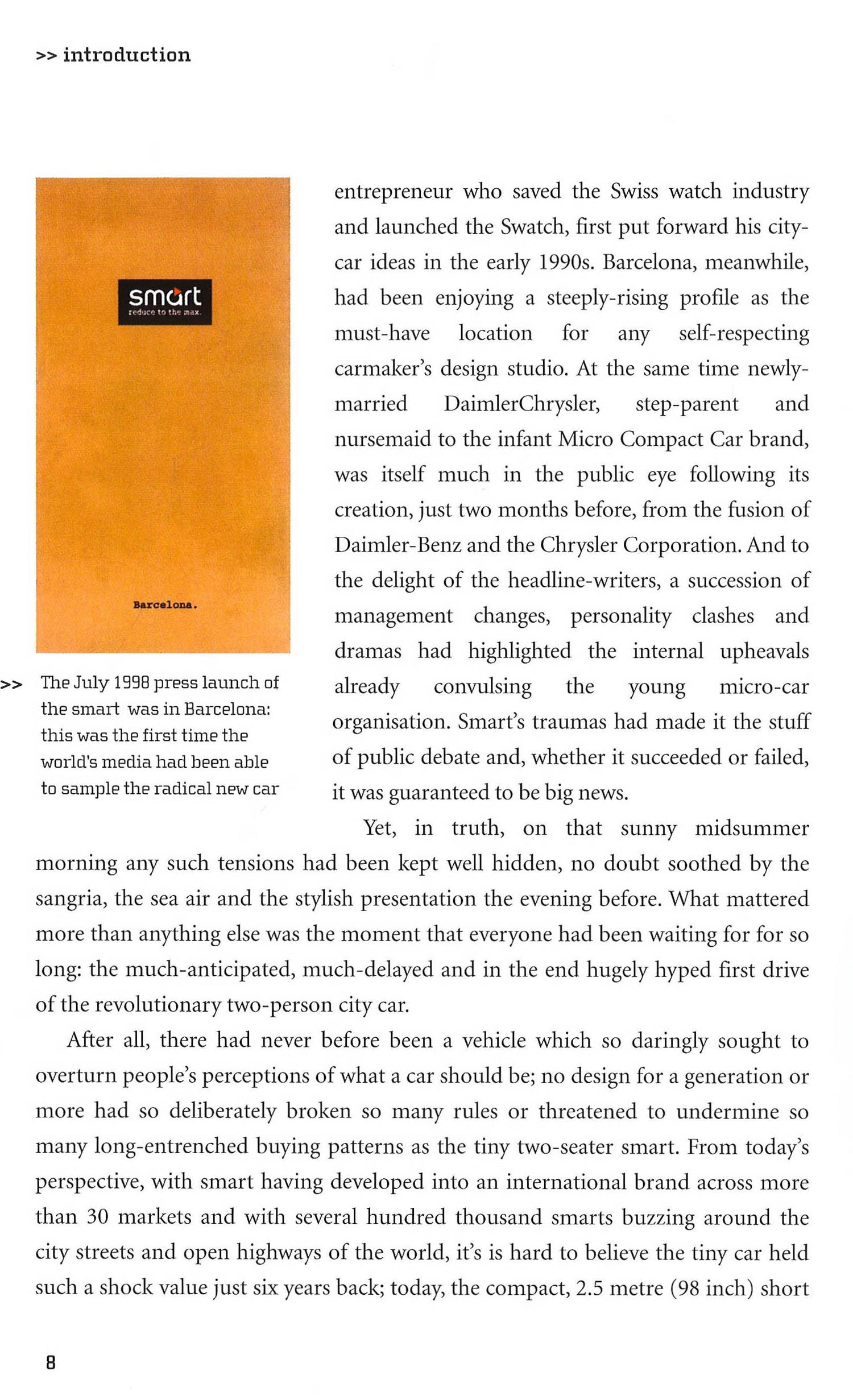 The story of smart is an epic tale of genius, inspiration, hope, disappointment, disaster and ultimate triumph. Funky, stylish and fun, smart is the youngest and most exciting brand of car on the market - and it has revolutionised the way we think about cars and the way we use them. It has put much-needed fun back into driving, and even city motorists smile when they're at the wheel of a smart. But it nearly didn't happen at all. The revolutionary design was the product of the genius who invented the Swatch watch, saving the near-bankrupt Swiss watch industry in the process. But these visionary ideas proved too radical and the tiny two-seater almost died at birth when a succession of backers lost their nerve. The sensational story of smart traces the decade-long history of this ambitious project, talking to key figures from every stage of the programme and building a vivid picture of an idea ahead of its time.- Inside information from within VW, never before published- The real reasons VW Group dropped the program and DaimlerChrysler picked it up- Secret approaches to other carmakers- What happened? The guiding light of the project speaks out for the first time- Full and frank interviews with today's leading authorities- Smart design - today, tomorrow and in 2010- Not so much a car, more a way of thinking: what the brand experts thinkAbout the AuthorTony Lewin has spent most of his working life driving cars, analyzing them and reporting on the ups and downs of the global enterprises that build them. As a business writer and editor of Financial Times Automotive World he has kept a constant watch on the world's top carmakers for many years. Today, Lewin divides his time between business journalism and books. In 2003 he published the widely-acclaimed How to Design Cars Like a Pro.