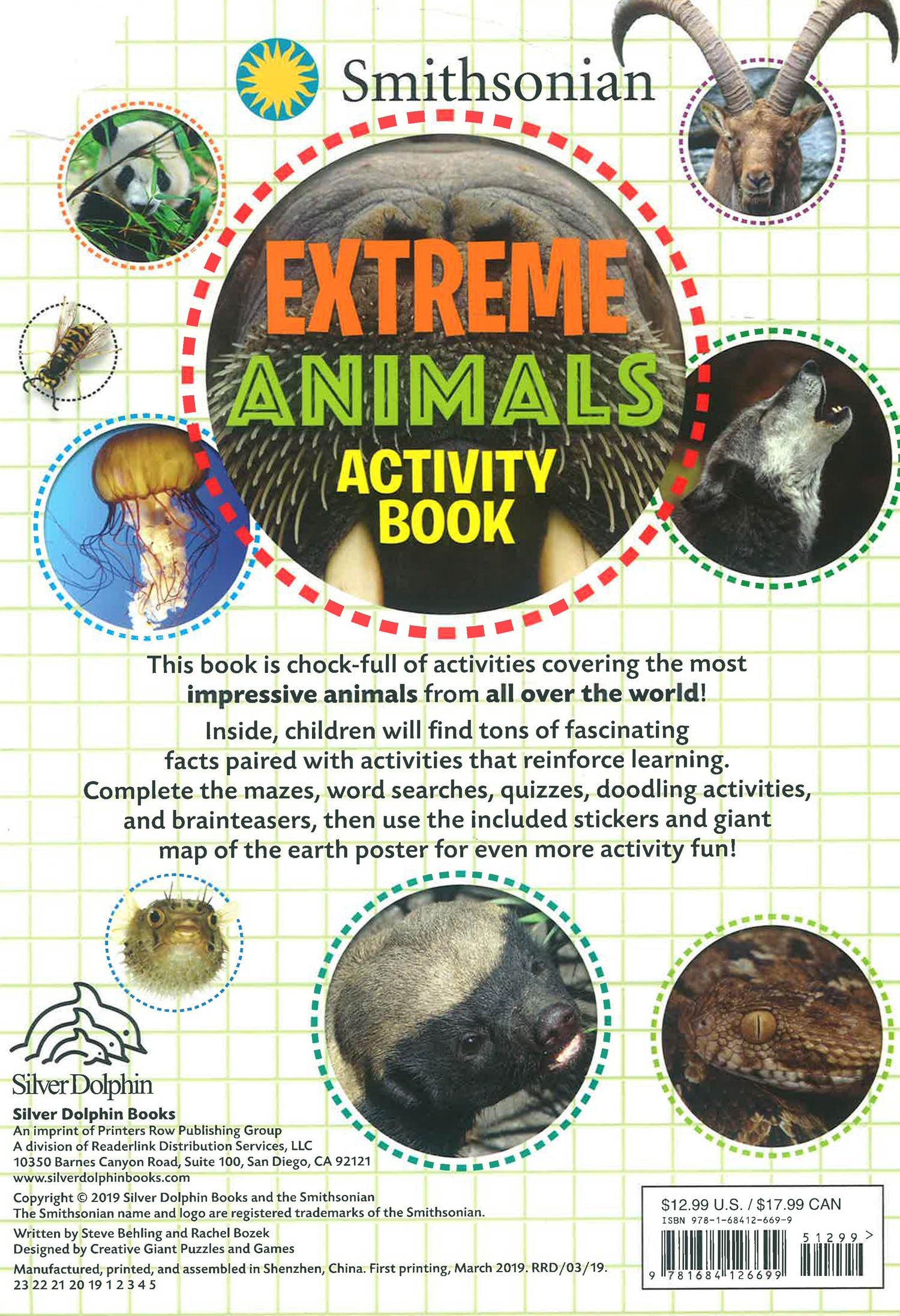 Get ready to learn about the strangest, most impressive animals in the world in Smithsonian Extreme Animals Activity Book! This book is chock full of activities covering the most extreme animals from all over the world. Inside, children will find tons of fascinating facts paired with activities to reinforce learning. Complete the mazes, word searches, quizzes, doodling activities, and brainteasers, then use the stickers and giant poster for even more activity fun!